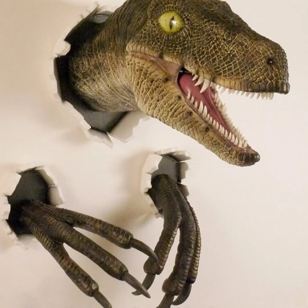 【Realistic Features】: The lifelike raptor head and claws provide an exciting and immersive experience for dinosaur enthusiasts. 【Three-Piece Set】: Includes a three-piece wall design that enhances the visual impact of any dinosaur-themed room or party. 【Hanging Decor】: Designed for easy suspension, this product adds a striking focal point to bedrooms and parties. 【Durable Design】: Crafted for longevity, ensuring the wall decoration remains vibrant and intact over time. 【Jurassic Theme】: Ideal for adding a Jurassic flair to any space, making it a unique gift or decorative element.