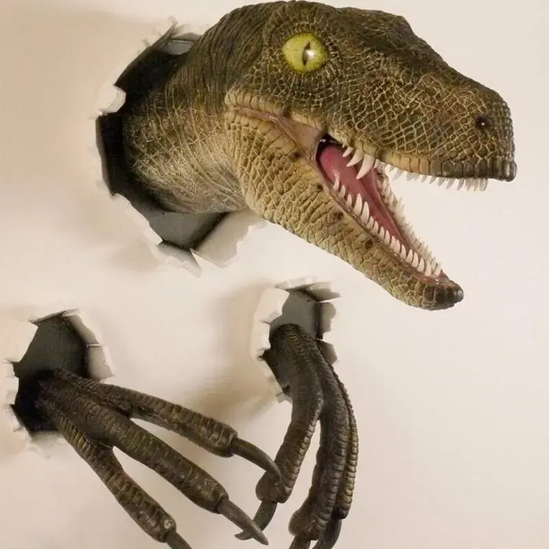 3D Dinosaur Wall Decor Set, Realistic Head and Claws, Three-Piece Broken Wall Design, Dinosaur Themed Design, Party Decoration, Kids Room, Jurassic Theme, Hanging Gift