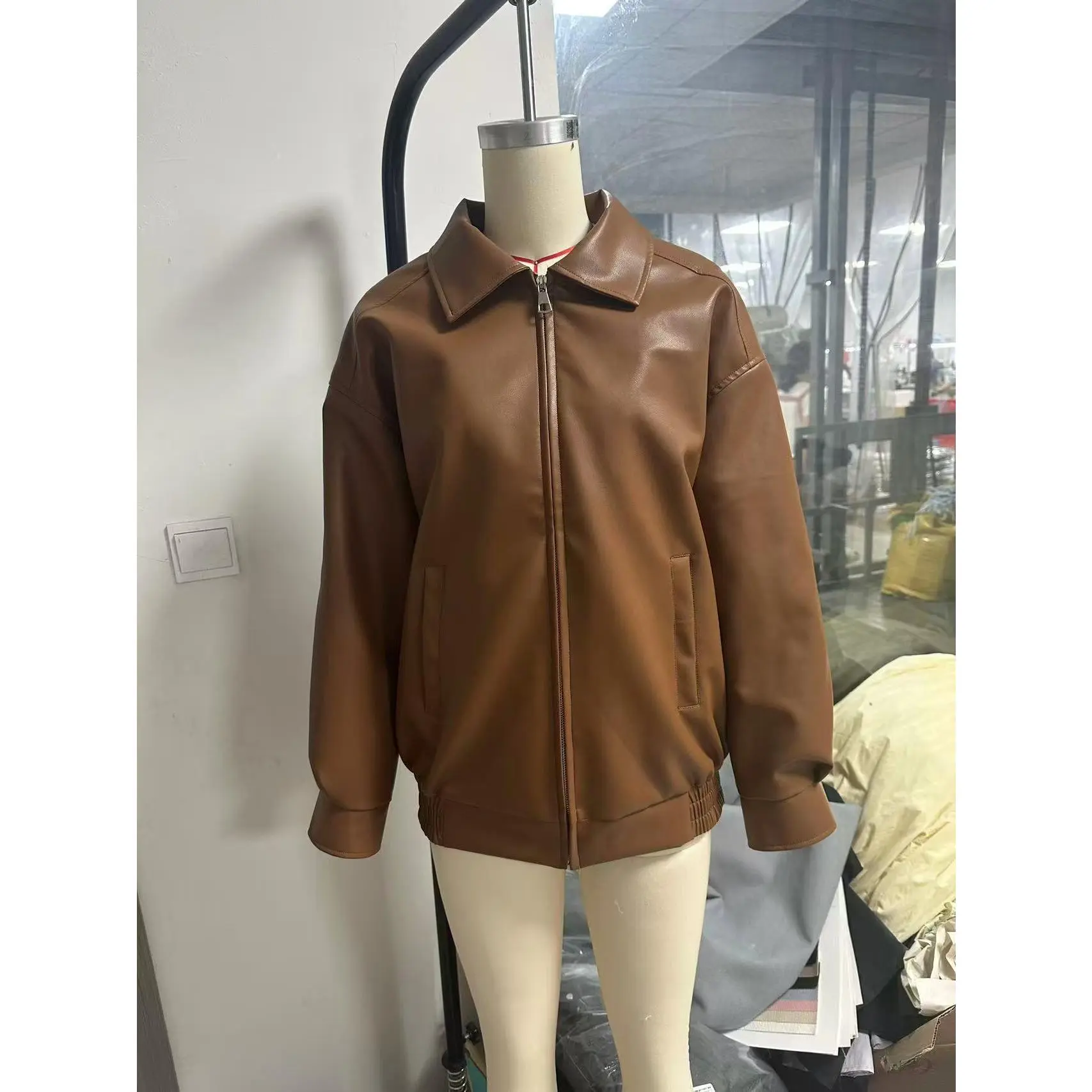 Womens Oversized Leather Jackets Faux Suede Fall Fashion Motorcycle Coats Winter Outfits Clothes Y2k Tops
