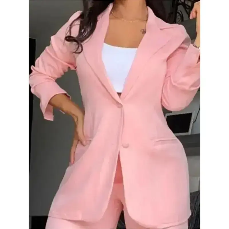 Woman Elegant Blazer Sets New Autumn Fashion Women's Notched Collar Coat + Pocket Design Pants Set Work Commuting Two Piece Suit(gift)