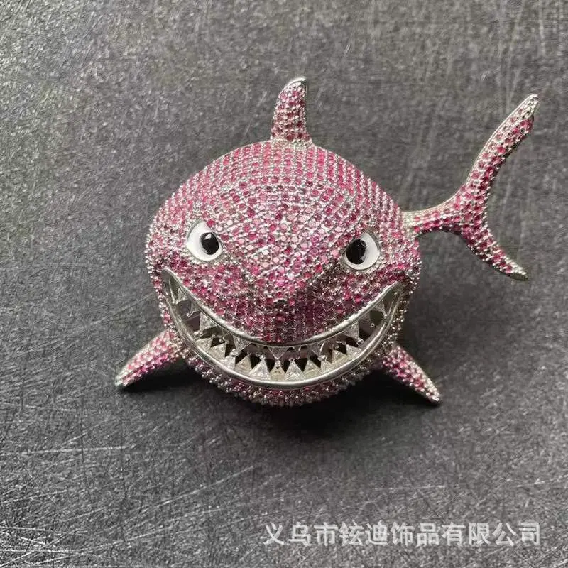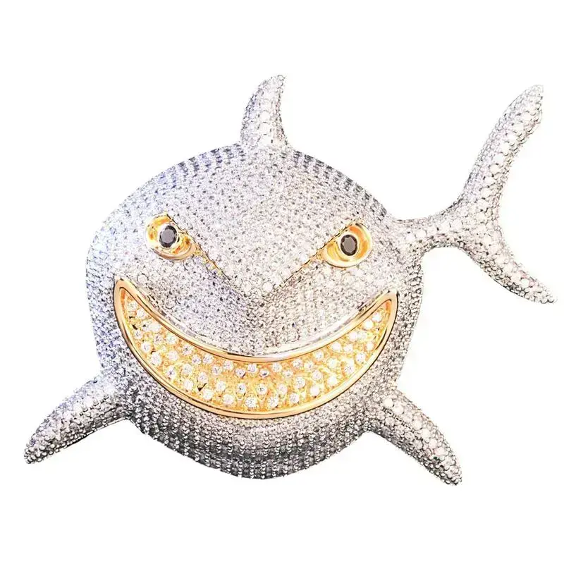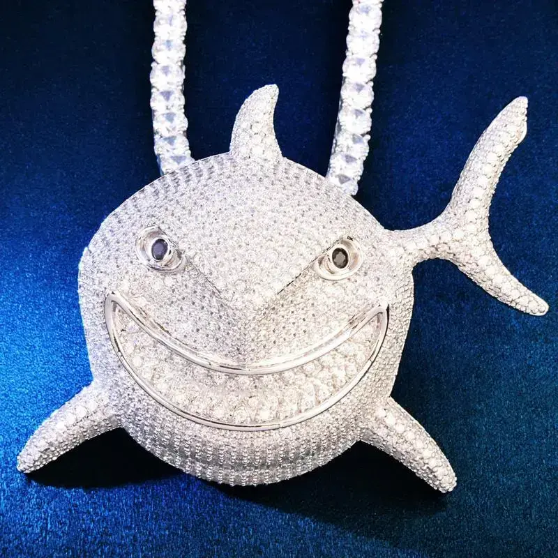 Hiphop Jewelry High Quality Zircon Set Big Shark Pendant Personality Tide Necklace Iced Out Cuban Link Chain for Men Fashion Party Gfit
