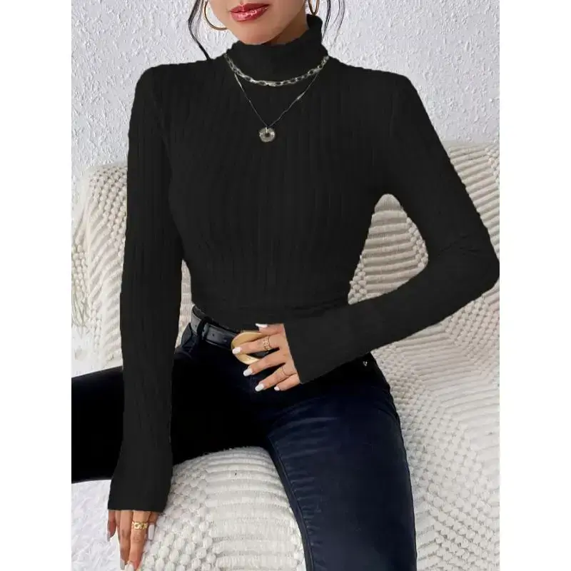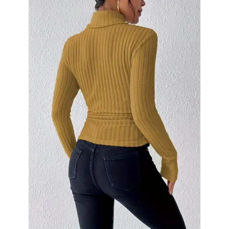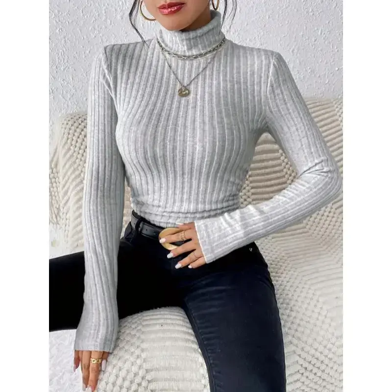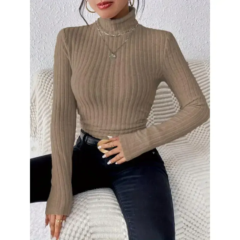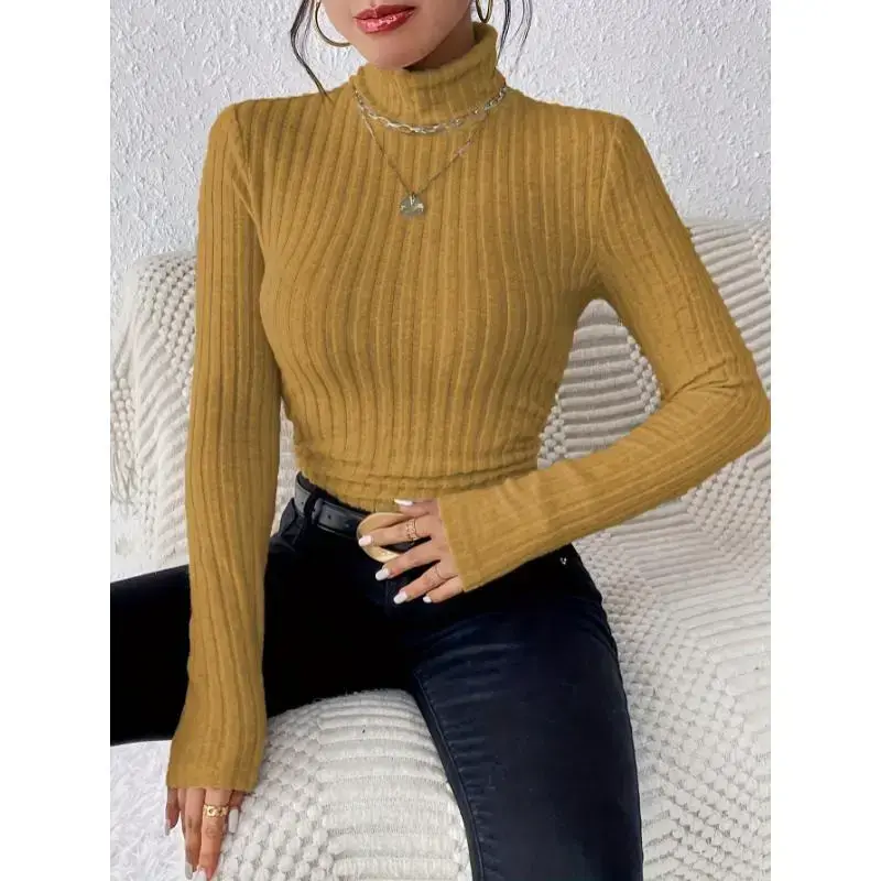 Women's Elegant Turtle Neck Slim Sweater, Long Sleeve Fall Winter Solid Color Knitwear Collar Fabric Tops Womenswear Chic Turtleneck Polyester Knitting