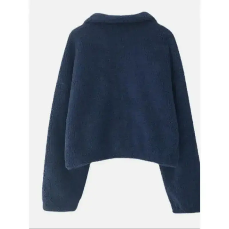 Women Sherpa Fleece Crop Coat Loose Hoodies Long Sleeve Short Jackets Sweet Can be used with raincoat