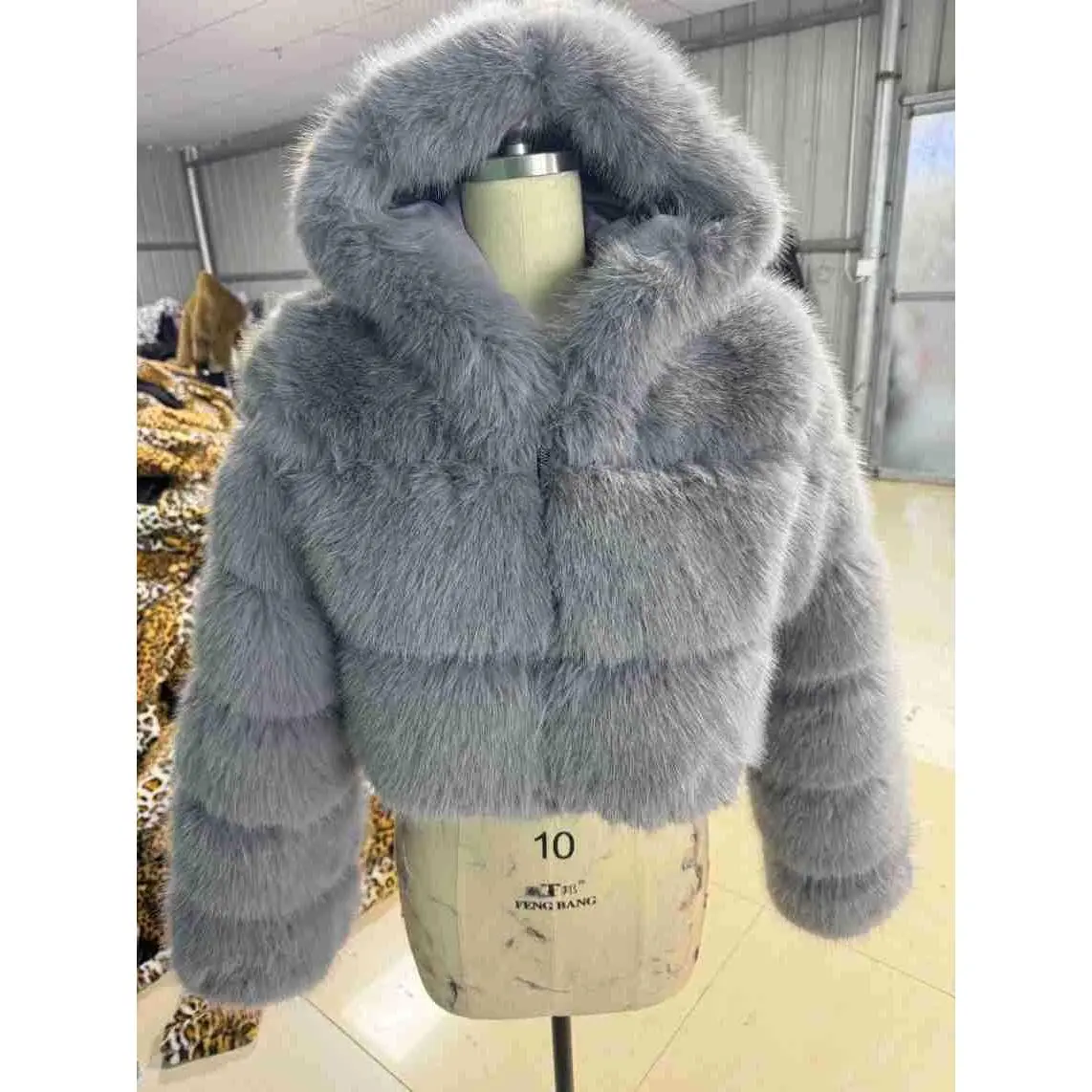 Loose Women Jacket 2025 Fashion Autumn Winter Faux Cropped Coat Fluffy Zip Hooded Warm Short Jacket(Raincoats)