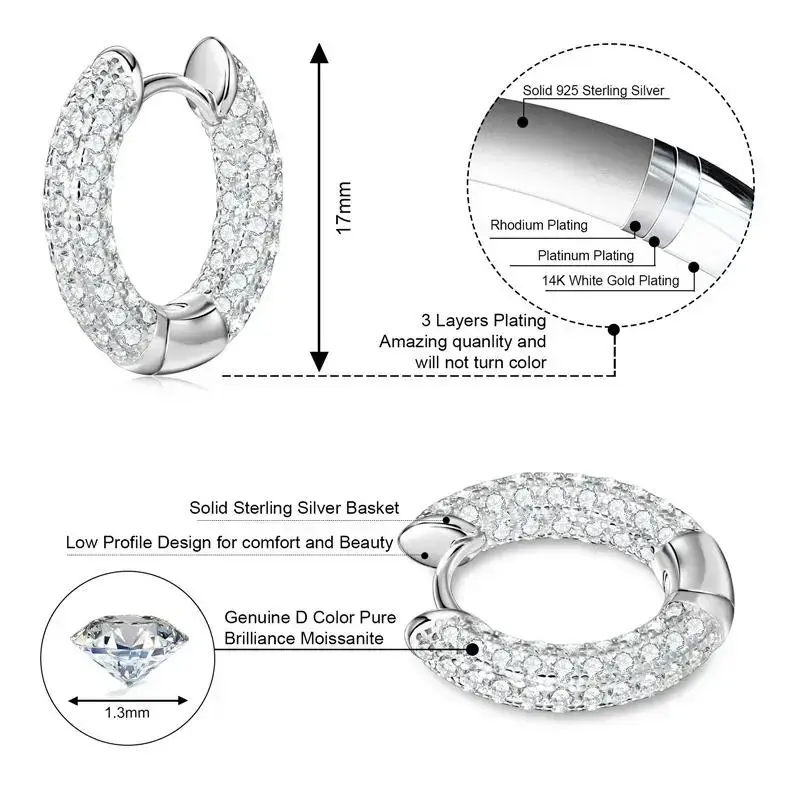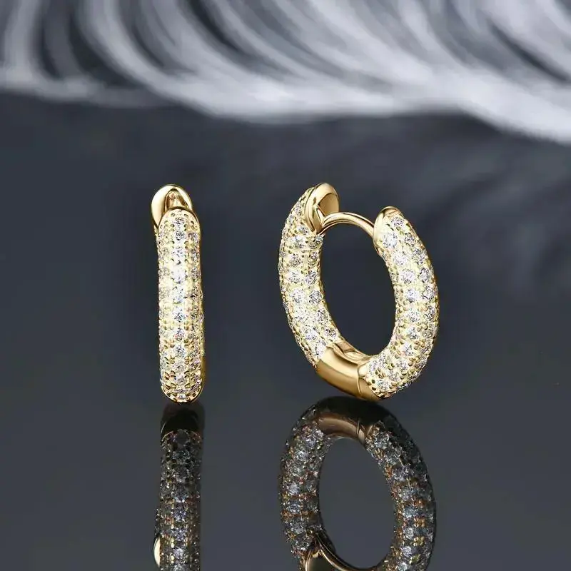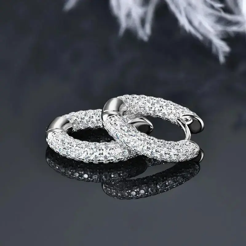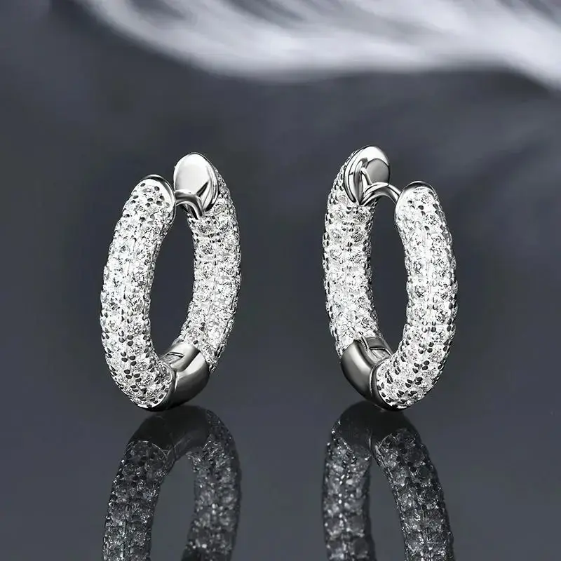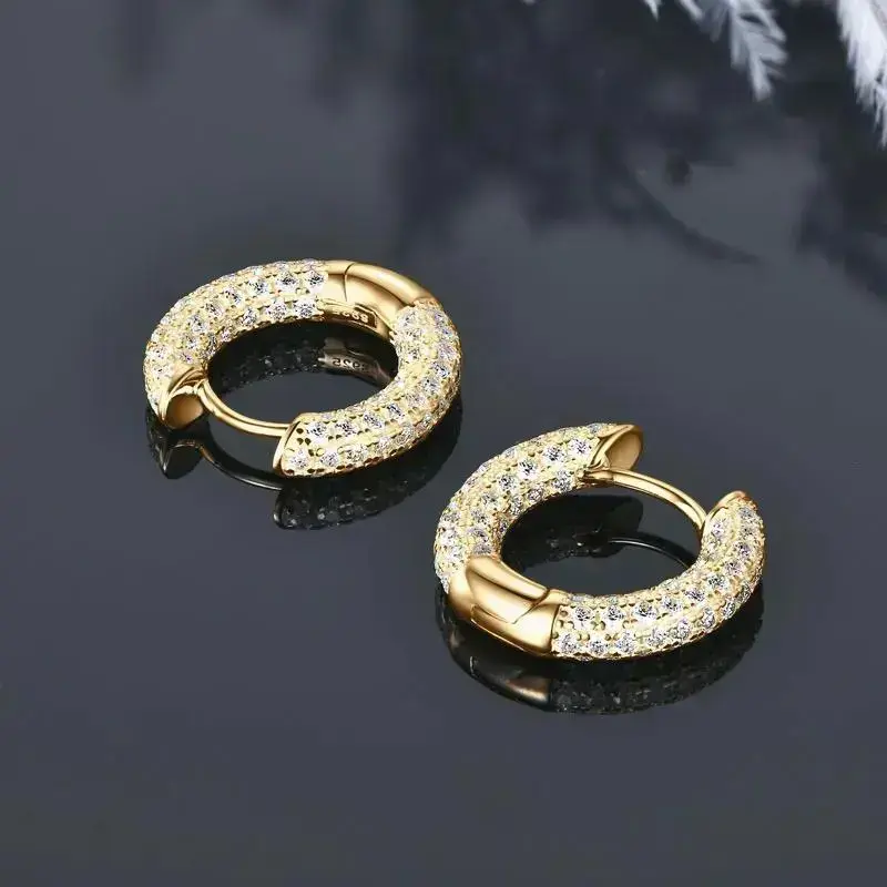 Luxury Pave Moissanite Hoop Earrings for Couples Women Men 100% Silver 925 Hip Hop Earrings Fine Jewelry Gift Hypoallergenic