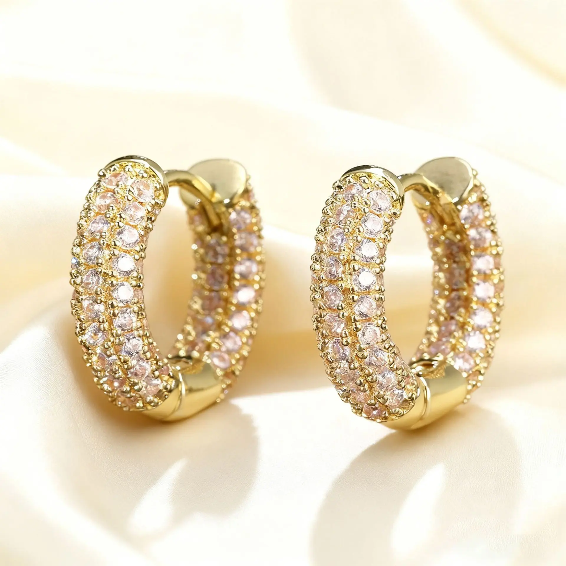 CAROVO 14K Gold-Plated Hoop Earrings Gold Plated Earring Set Rhinestone Cubic Zirconia Hoop Earrings Chunky Small Gold-Plated Hoops Huggie Earring for Women Gold Jewelry for Woman