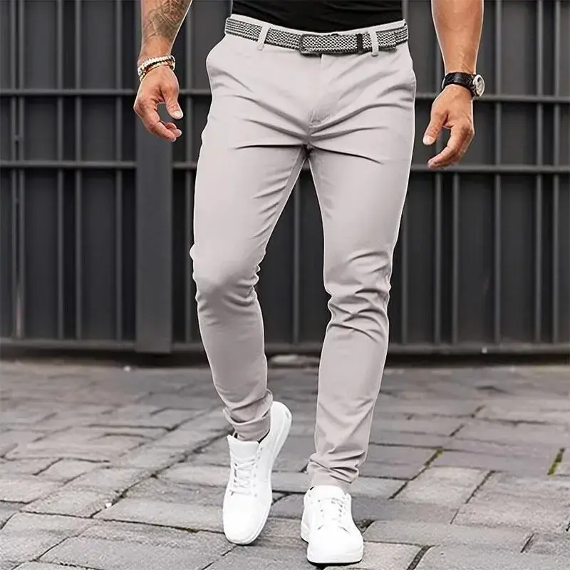 Men's Pure Color Tight Pocket Zipper Business Casual Slim-Fitting Narrow Bottom of a Trouser Leg Trousers Slim Fit Stretch Casual Chinos