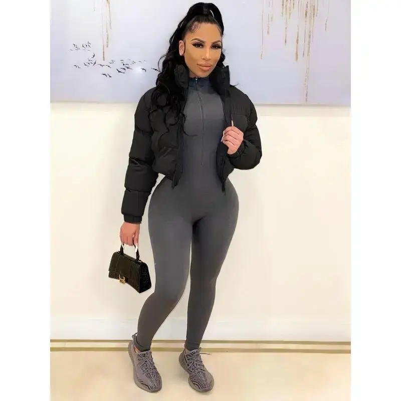 Winter Thick Warm Cotton Down Jacket Women Clothing Gray Zipper Short Puffer Parkas Coats Outwear Female Crop Tops Streetwear