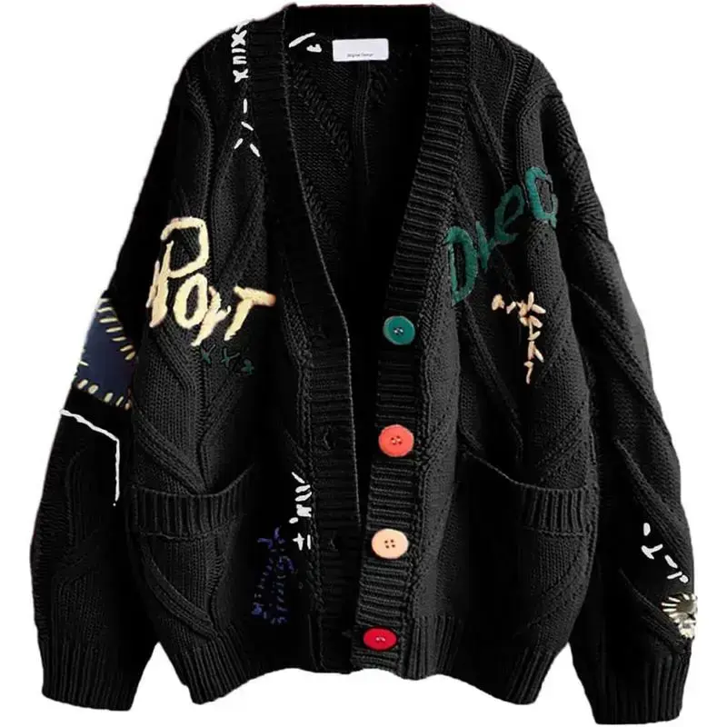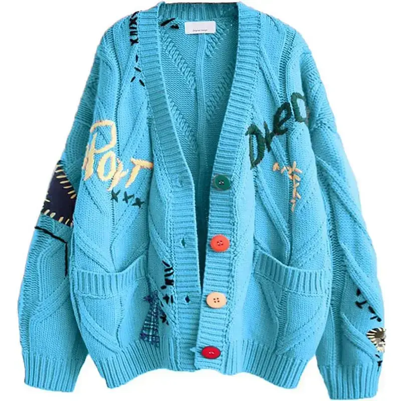 Womens Open Front Cardigan Cable Knit Long Sleeve Button Down Embroidery Cardigan Sweaters for Knitwear Womenswear(gift)