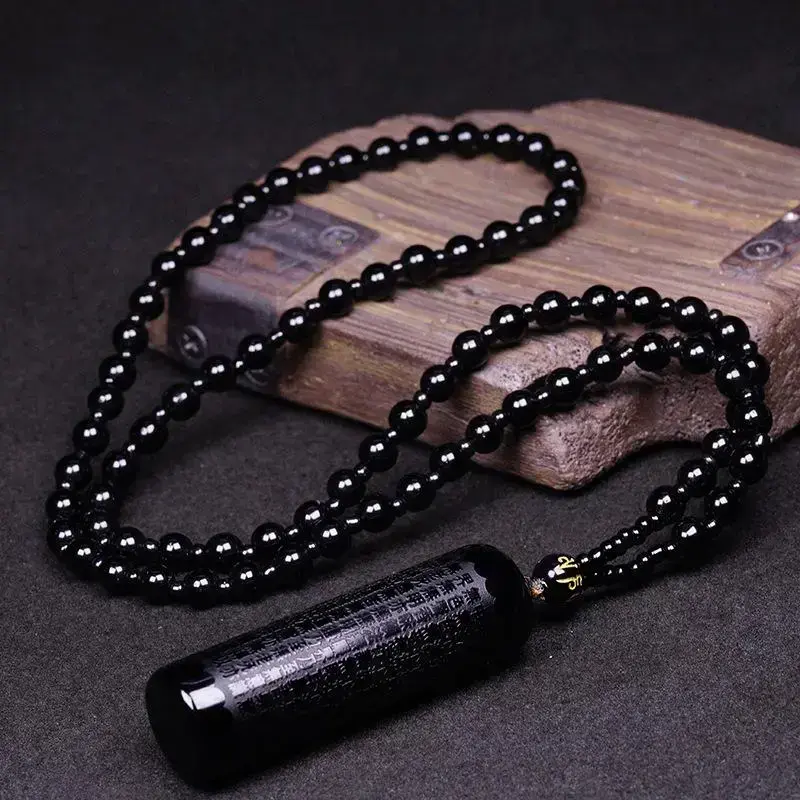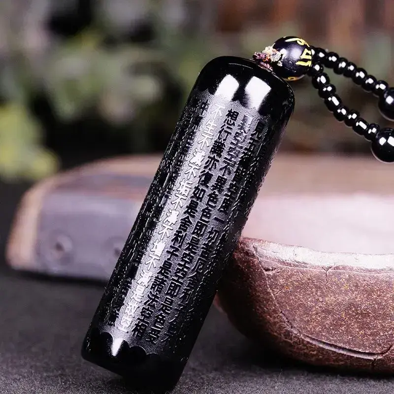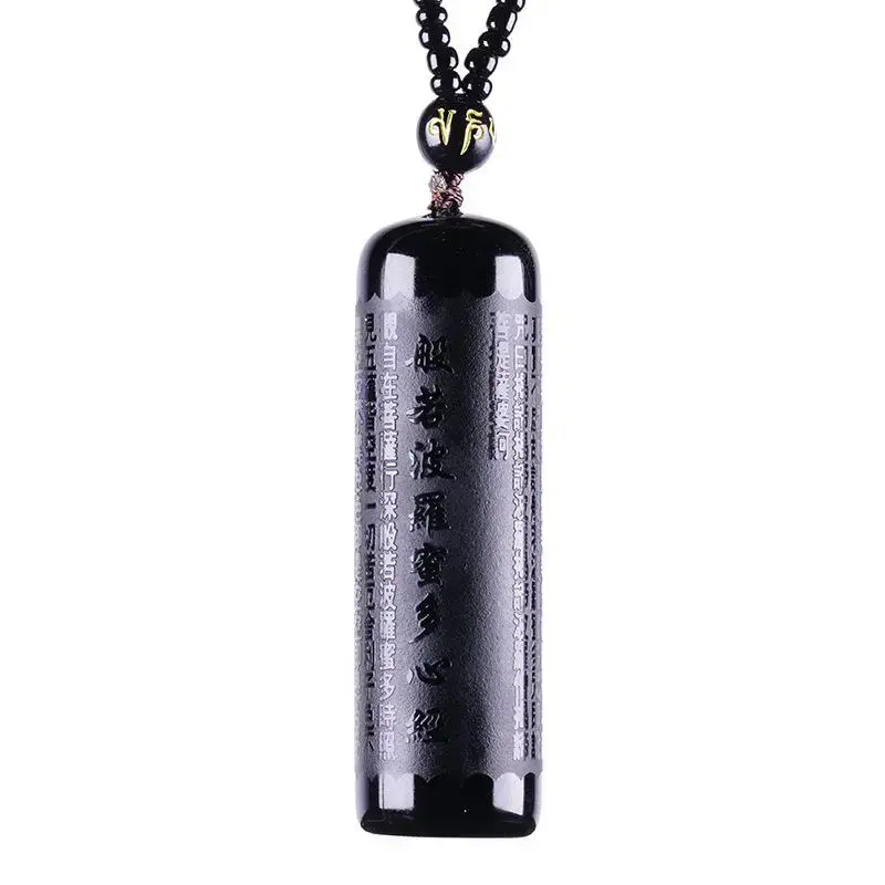1pc Black Obsidian Buddha Pendant Prajna Paramita Sutra Buddha Necklace Men's Women's Jewelry With Beads Chain Stainless Steel Cross jewelry japanese chainmail a bandana necklace golden royal chain pixie green racer traditional clover dog audacious