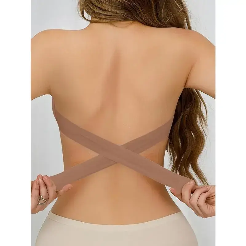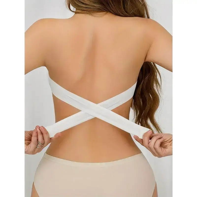 Wireless Boob Tube Top with Side Buckles, Sexy Strapless Nylon Knitted Fabric-Removable Padding, Cross Shoulder Strap Details, Solid Color Stretch Tube Top for Adults-Nylon 75%, Spandex 25%Gift(gift)