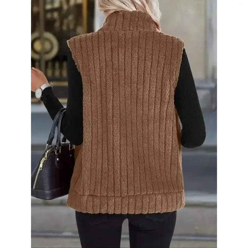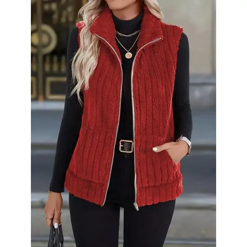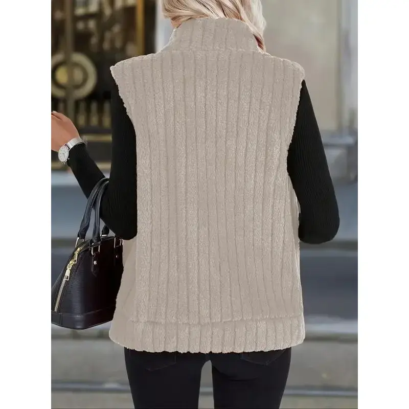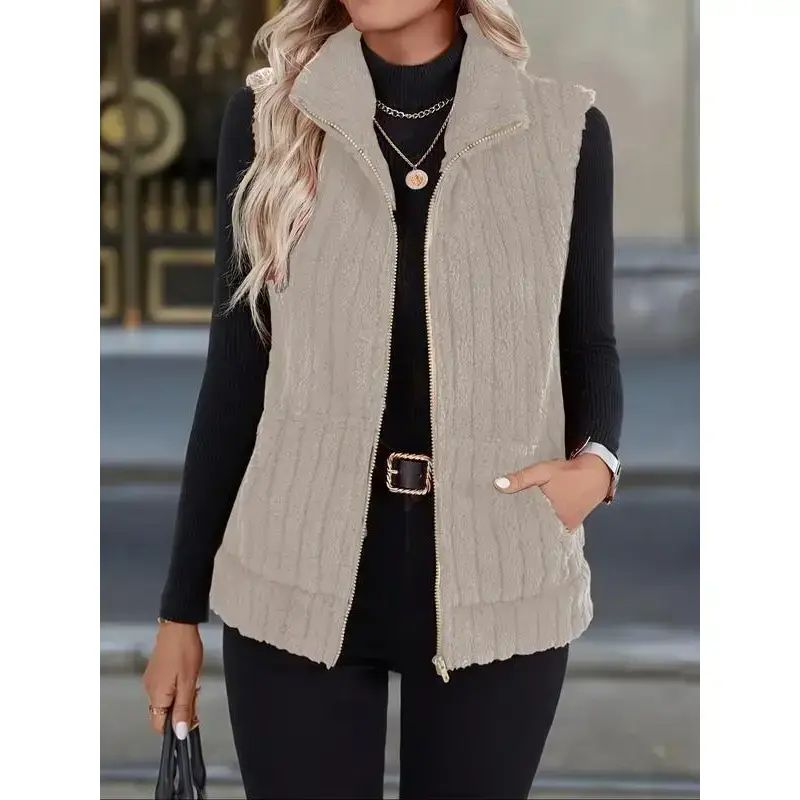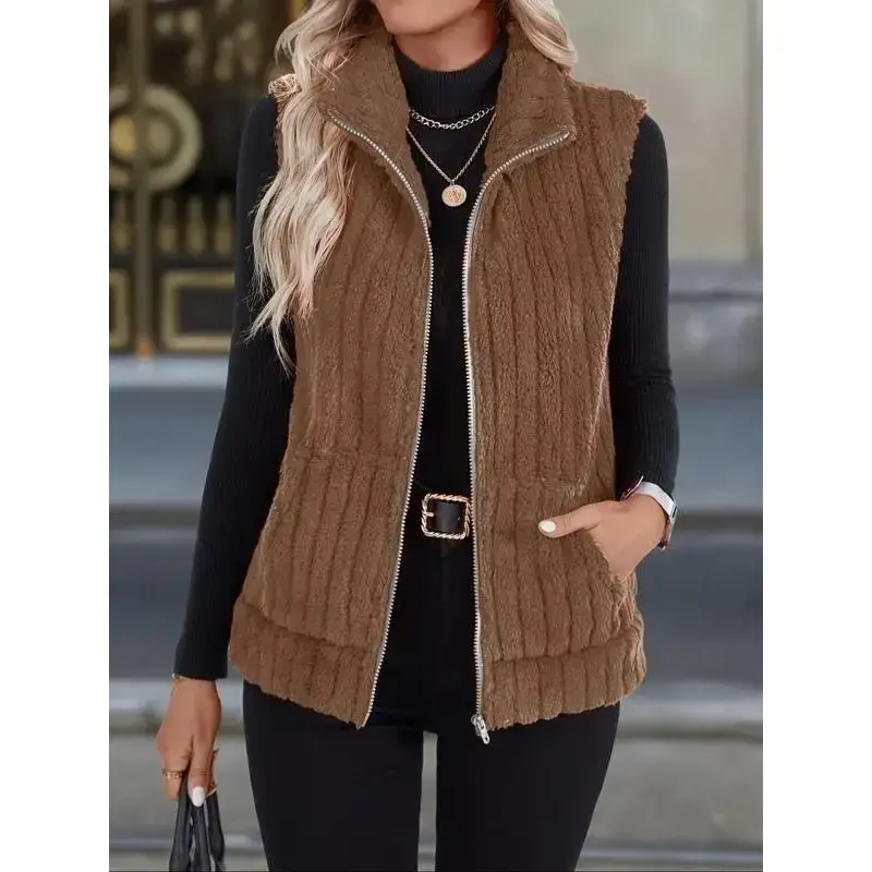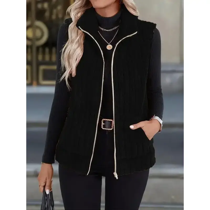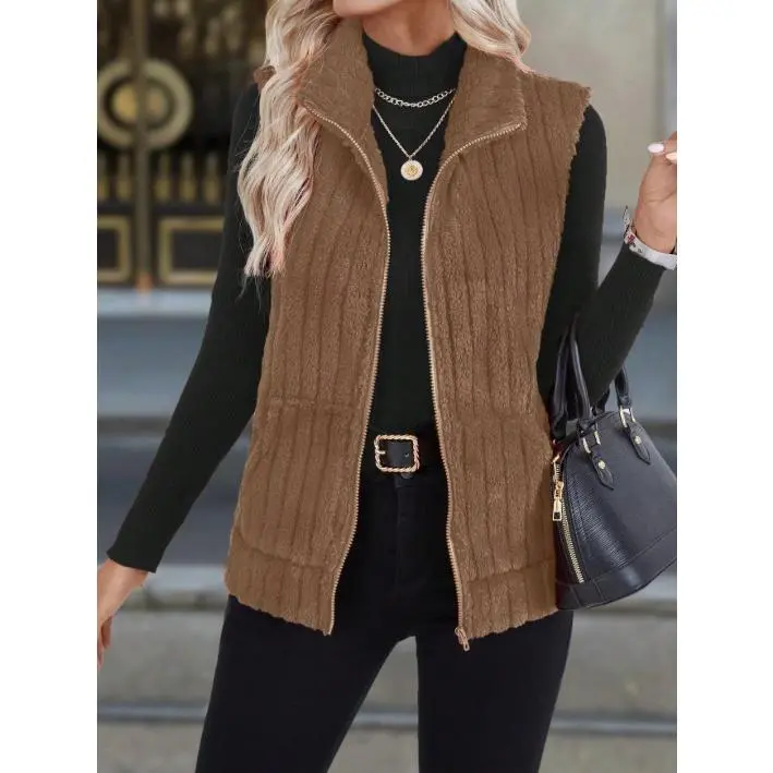Women's Soft Comfortable Stand Collar Zipper Pocket Vest W0344, Spring & Fall Casual Wear, Versatile Ladies' Waistcoat(gift)