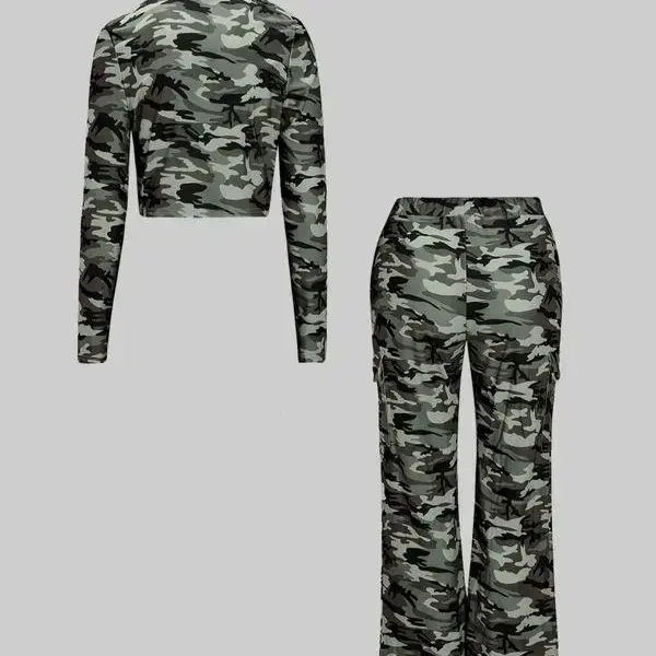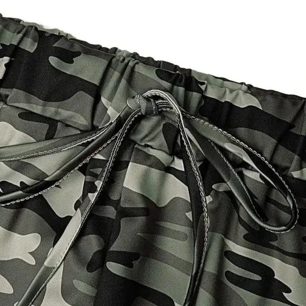 Stylish camouflage pull rope Wide leg tray, top with multiple pieces of trouses, breathable comfort fabric, suitable for daily wear