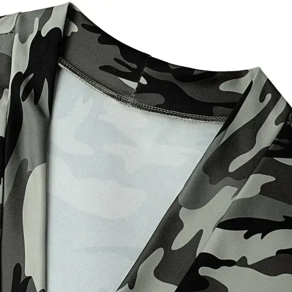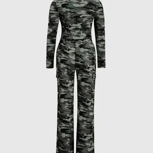 [Modern Camo Pattern]: Features a unique camouflage print that stands out, making it distinct from standard workwear options on the market. [Efficient Pocketing]: Equipped with multiple pockets, allowing for practical storage of essentials while maintaining a sleek profile. [Breathable Fabric]: Constructed with a breathable material to enhance wearability in various conditions, especially during spring and fall. [Cropped Top]: The cropped length of the top adds a contemporary edge, making it a fashionable choice for casual outings. [Drawstring Detail]: Features an adjustable drawstring for a secure fit, offering personalization for varying body shapes and sizes.