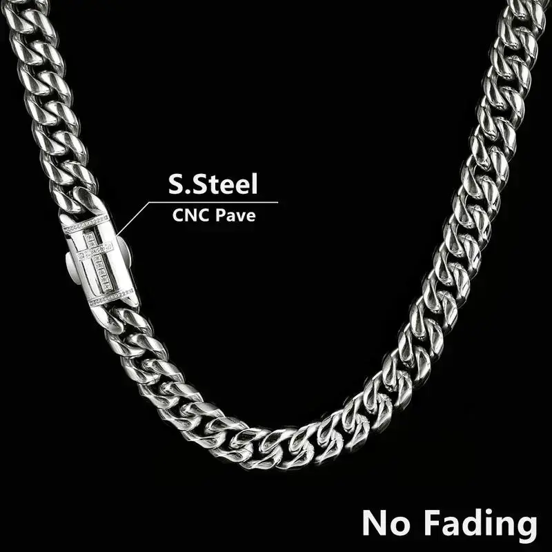 10/12mm Hip Hop Stainless Steel Jewelry Homme Cadena Luxury Miami Cuban Link Chain Men Rapper Rock Necklace gldmen'schain