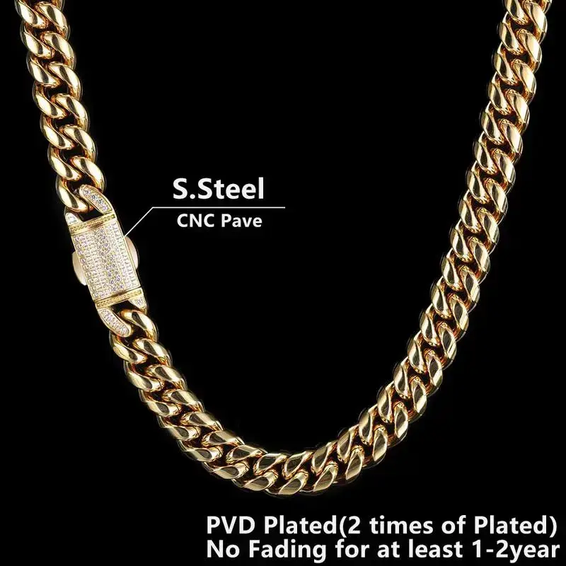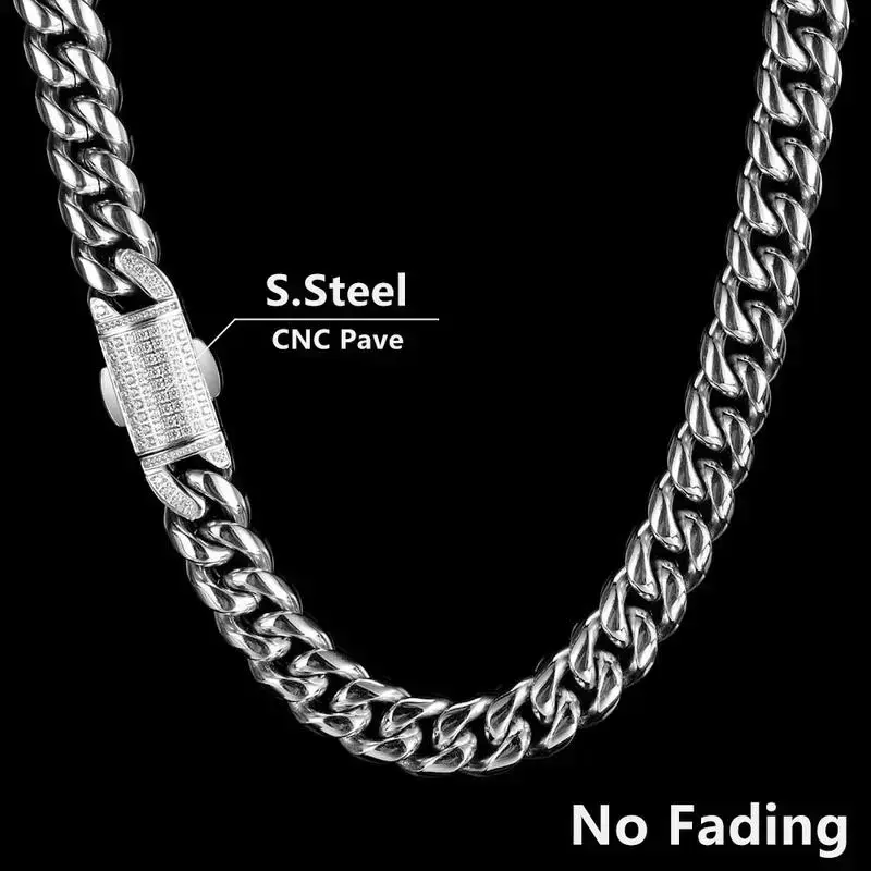 12mm Hip Hop Stainless Steel Jewelry Homme Cadena Luxury Miami Cuban Link Chain Men Rapper Rock Necklace gldmen'schain