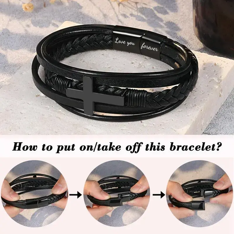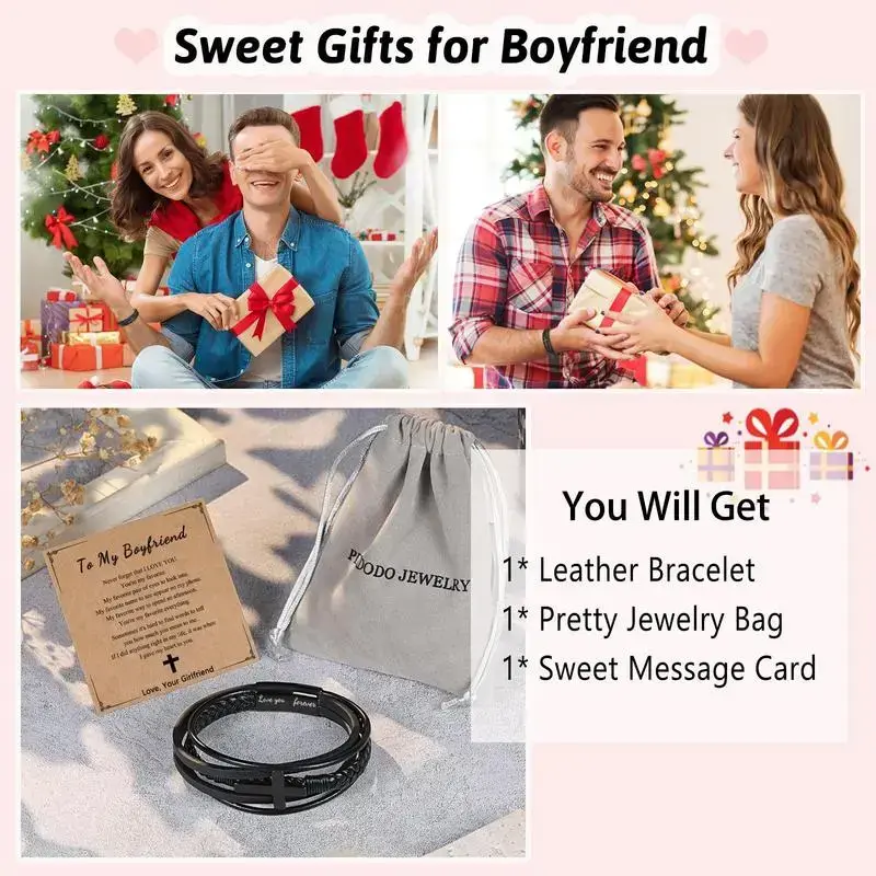 Couple Bracelet Gift To My Boyfriend Man Brother Cross Leather Bracelet Birthday Valentine's Day Christmas Gifts Daily Clothing Decor