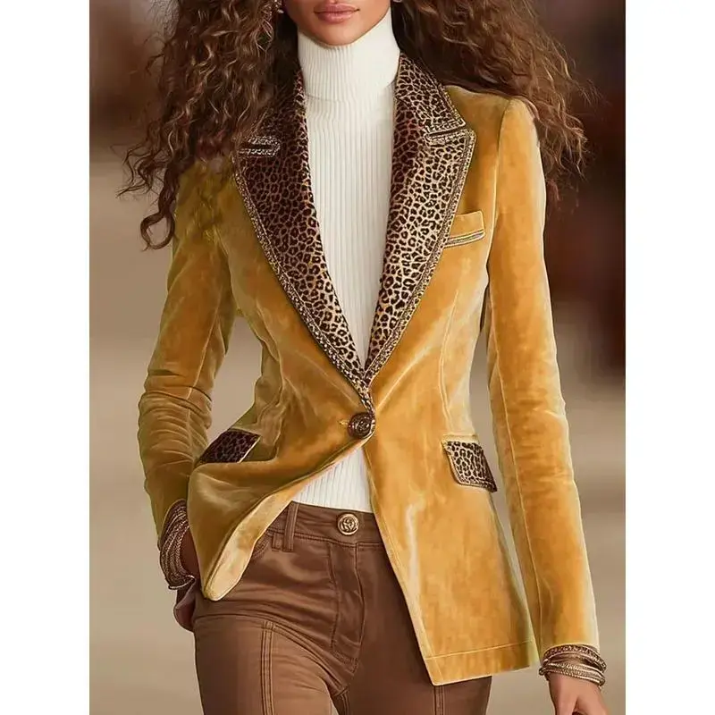 Product Description Size Availability We offer sizes S, M, L, XL, XXL, and XXXL for tis blazer. Current stock status: 1 unit available for S/M/L, 2 units for XL, 3 units for XXL, and 4 units for XXXL. Each size retains the same premium velvet fabric, leopard-print collar detail, and tailored silhouette to meet diverse preferences.