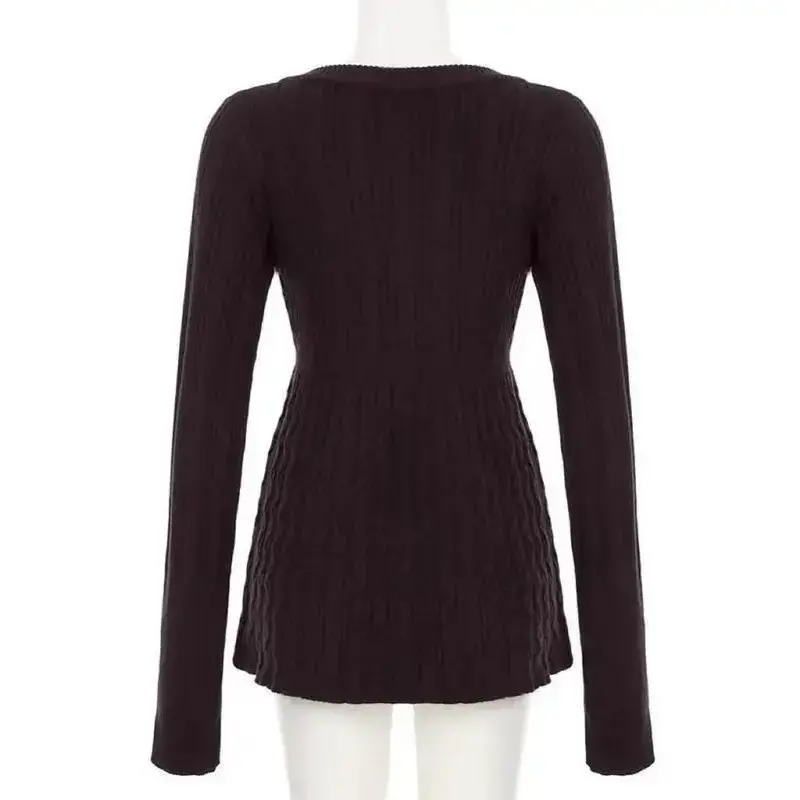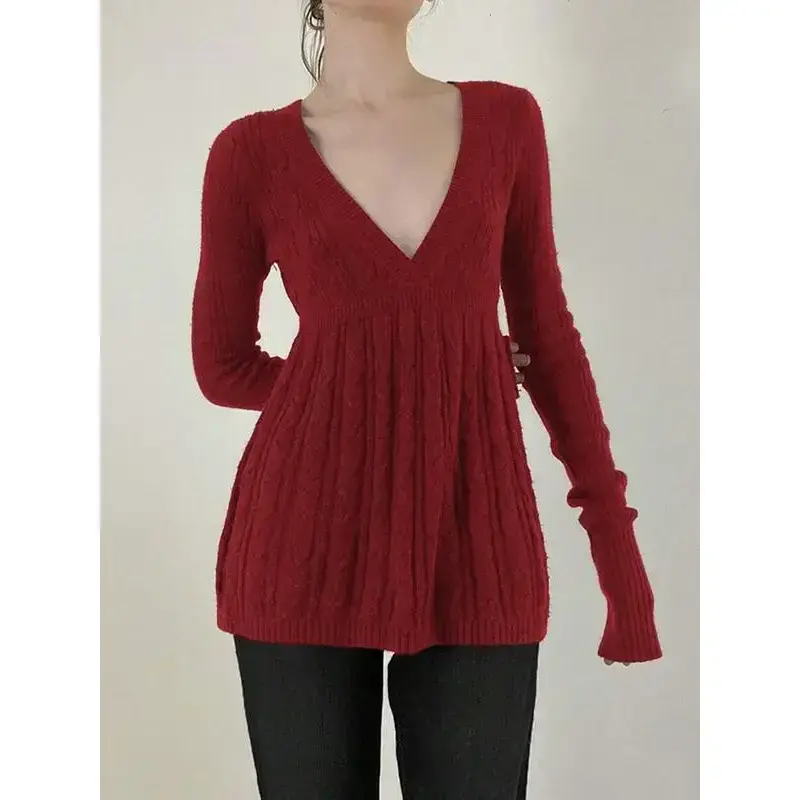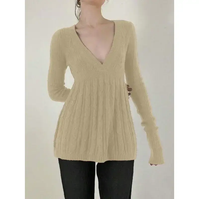 Y2k Vintage Warm Sweater Women Pastel Goth Soft Sweet Cute Long Sleeve V-neck High Waist Knitted Pullover Female