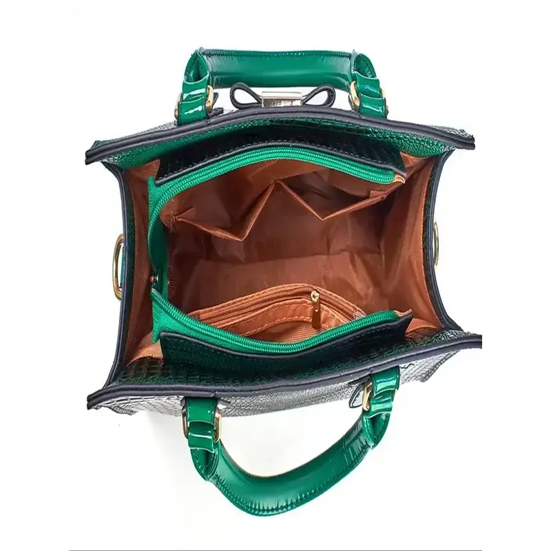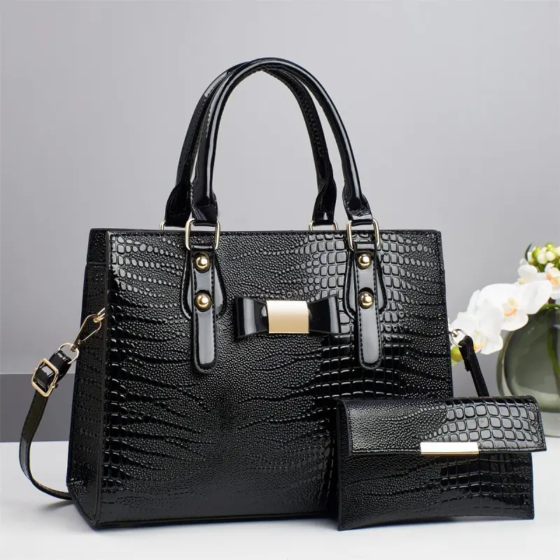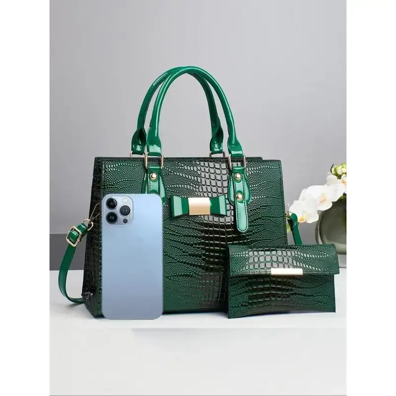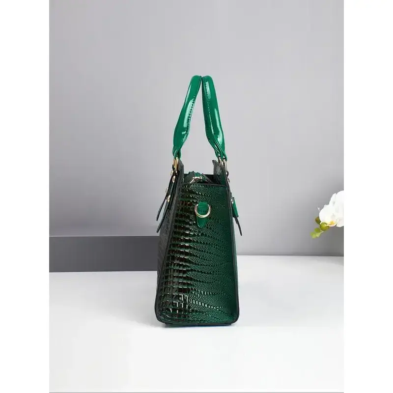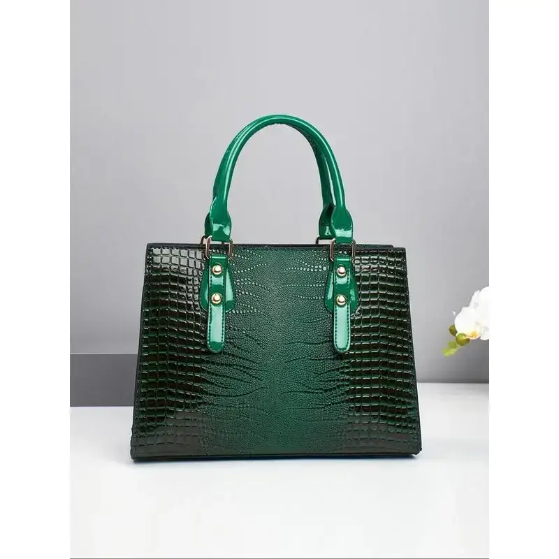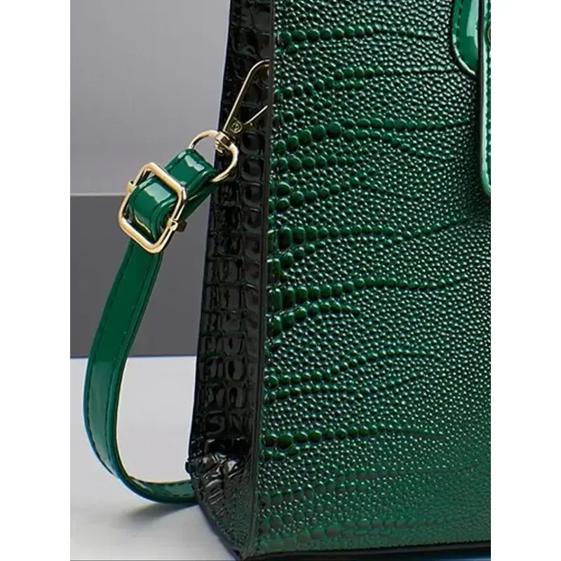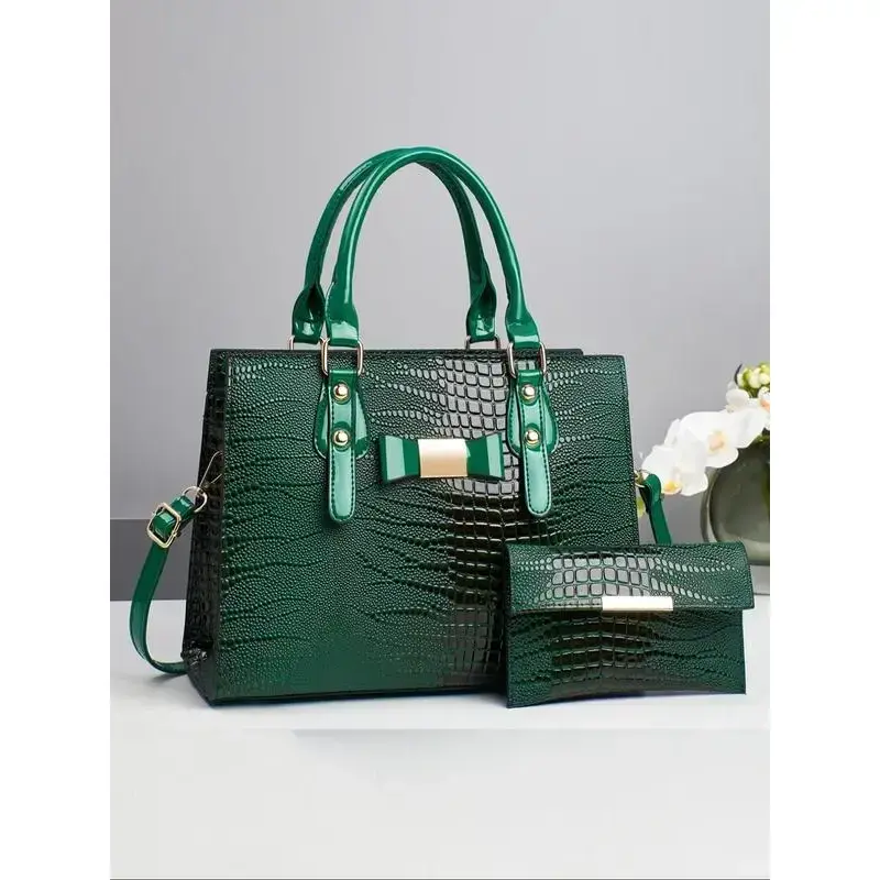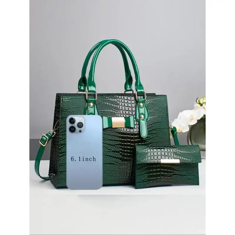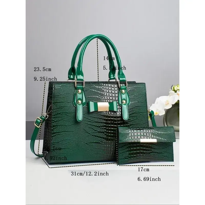 Women's Elegant Crocodile Embossed Handbag & Wristlet, Fashionable Solid Color Shoulder Bag Set for Daily Used, Casual Trendy Versatile High-quality Daily Commuting Bag, Textured Handbag, Unique Bags