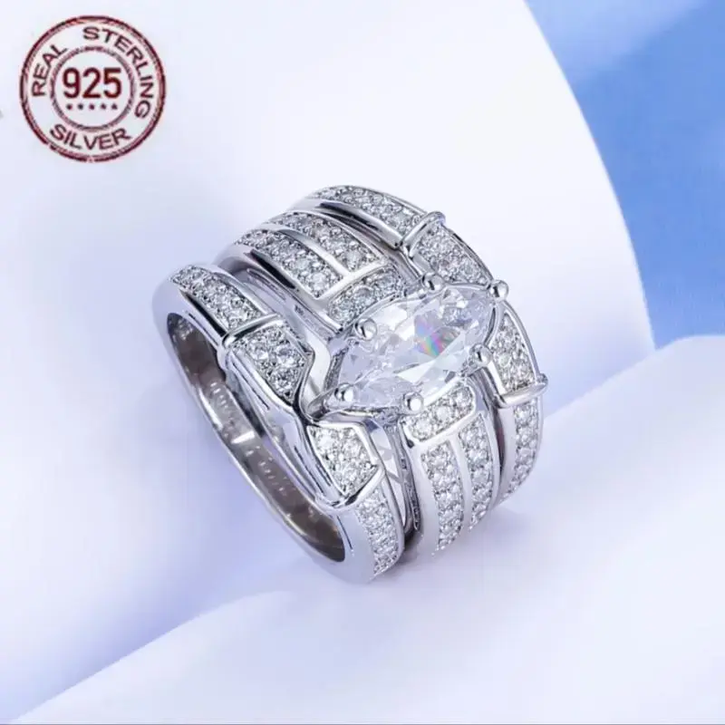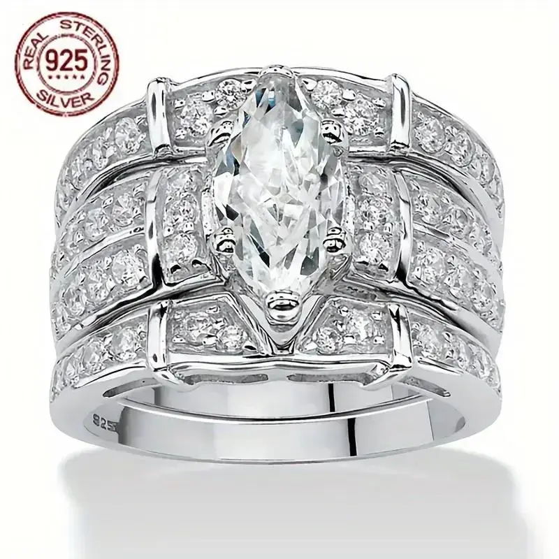 [Luxury sterling silver ring] sterling silver luxury stack geometry Wedding ring set - 925 pieces of fine jewelry