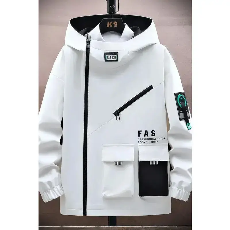 Zipper Jacket Men'S Pilot Hooded Jacket Spring And Autumn Baseball Uniform Tide Card Loose Pullover Front Pocket Coat Menswear Asian Casual Stylish
