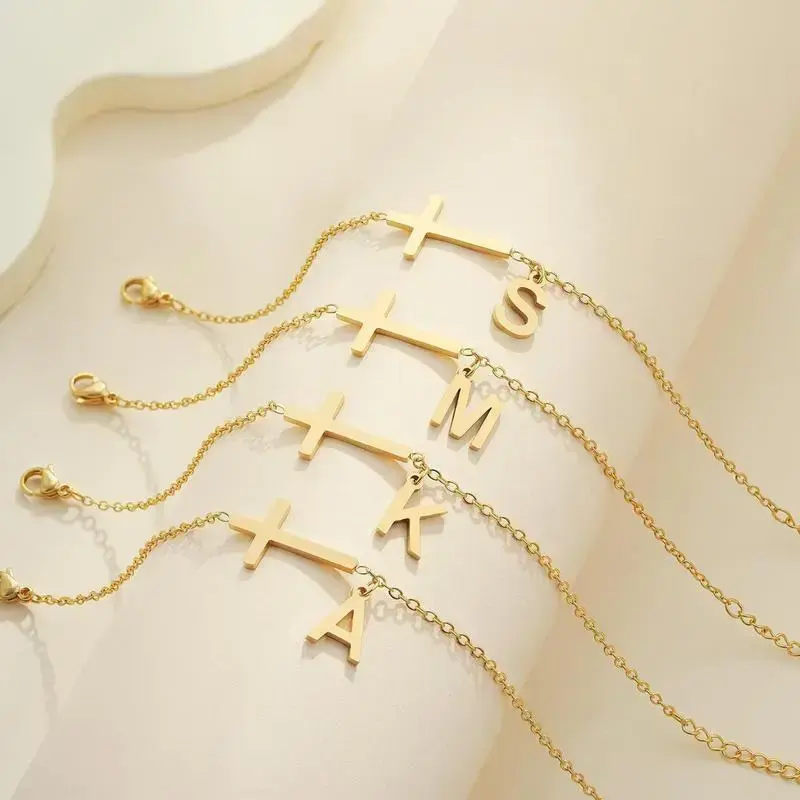 Cross Initial Bracelets Initial Braclets for Girls Women - Teen Girls Gifts Trendy Stuff 18K Gold Plated Cross Initial Letter Bracelets Dainty A - Z Letter Bracelet Birthday Gifts for Girl Women Age 5-16