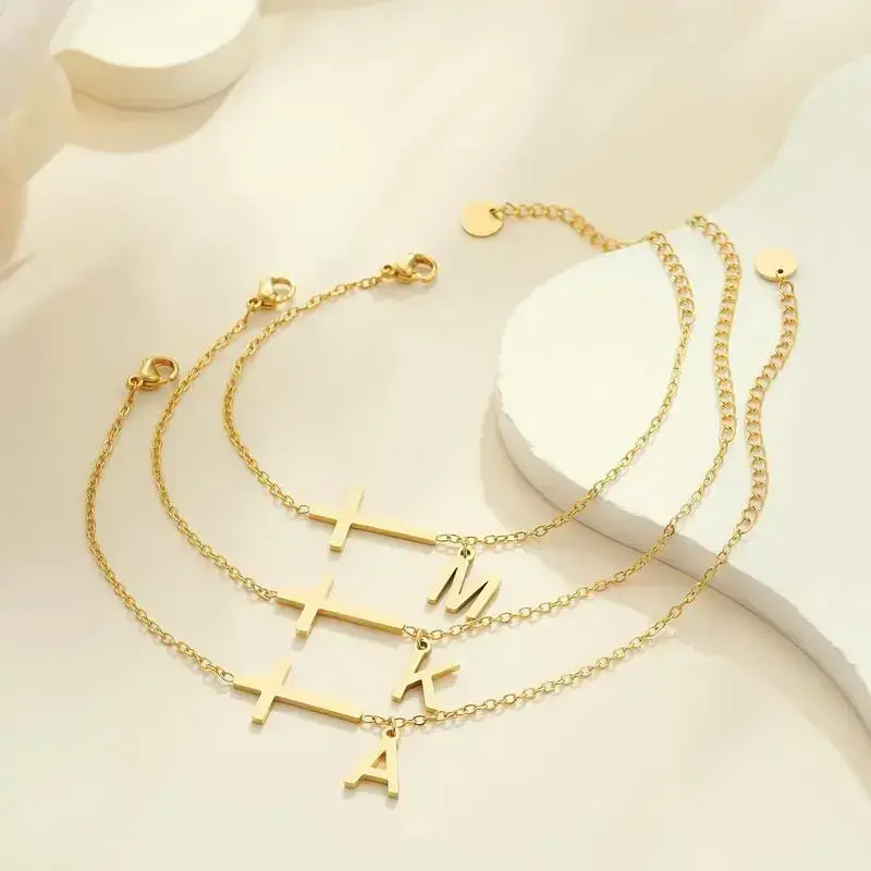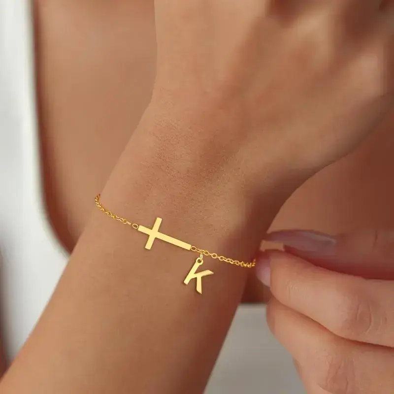 Cross Initial Bracelets: Our bracelet bright and shiny with smooth edges all around, which reflect the light beautifully, and make the bracelet a fashionable everyday accessory.Designed for stylish jewelry for women with taste Size: Inner circumference of the bangle bracelet is 6.5cm.Every bracelet comes with a letter pendant, please confirm your wrist size and desired letter before purchasing Material: Knot Initial bracelet is made of 18K Gold Plated sturdy, does not fade.And our dainty bracelets for women no lead, and nickel free, hypoallergenic Gifts: Teen Girls Gifts bracelet is your applicable choice as birthday gift to your mom, wife, friends or yourself. Pretty yet delicate bracelet, easy to match your clothing style and fit well for many occasions