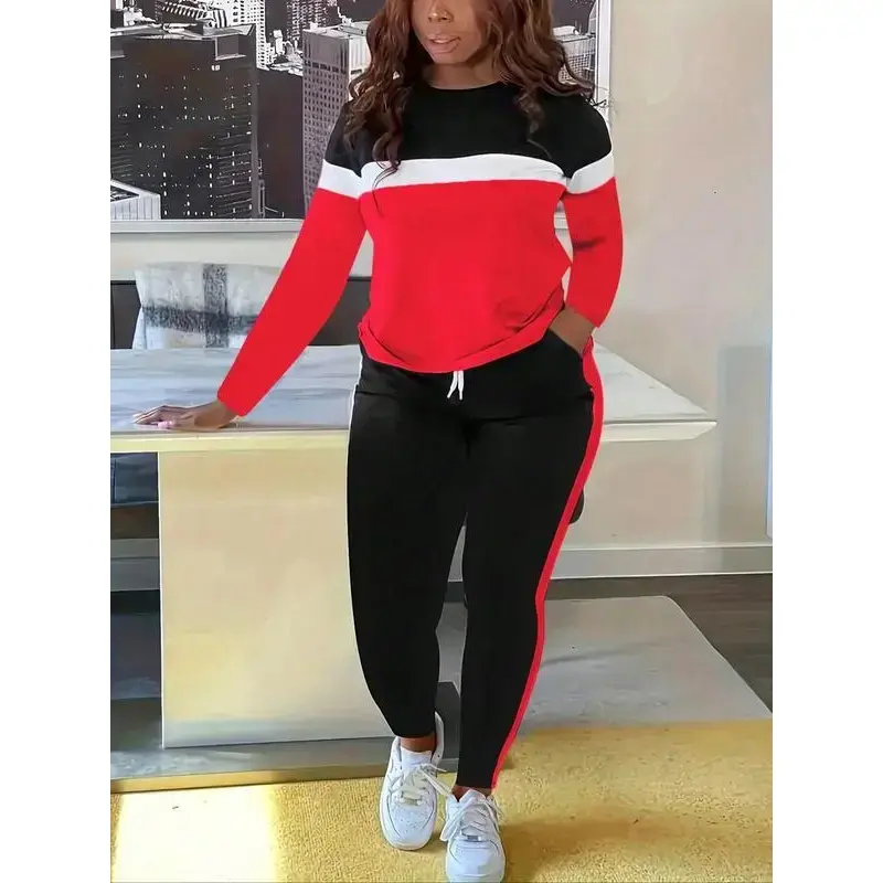 ��Distinct Colorblock��: Featuring a vibrant colorblock pattern, this set offers a unique visual appeal, setting it apart from typical two-piece options. ��Essential Pocket��: Equipped with practical pockets, this set allows for easy storage of small essentials, enhancing functionality without sacrificing appearance. ��Durable Material��: Crafted from high-quality jersey elastane, the fabric ensures durability and a comfortable fit, ideal for daily wear and frequent washing. ��Drawstring Adjustment��: The drawstring waist provides an adjustable fit, allowing you to customize comfort for all-day wear, ensuring it feels just right. ��Long Sleeve Coverage��: The long sleeves offer added coverage, making it suitable for varying temperatures, perfect for transitional seasons.