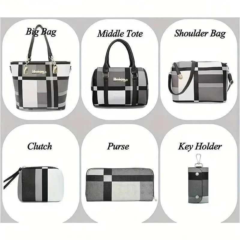 6pcs Womens Handbags Tote Bags Shoulder Bag Purses Satchel Bag Top-Handle Handbag Crossbody Bag Wallet Clutch