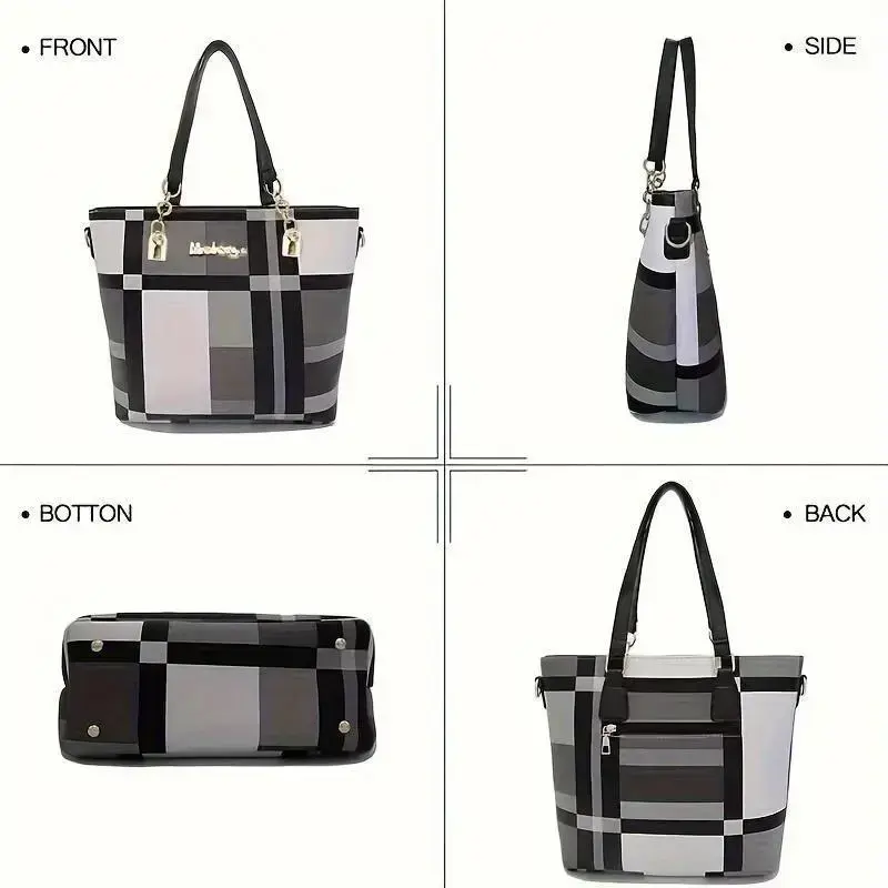 Canvas Handbag Set, 4 Pieces with Adjustable Shoulder Strap, Zipper Closure, Edge Paint Details, Including Wallet, Hand Wash/Dry Cleaning, Random Printing Design, Large Capacity, Suitable for Travel and Gifts
