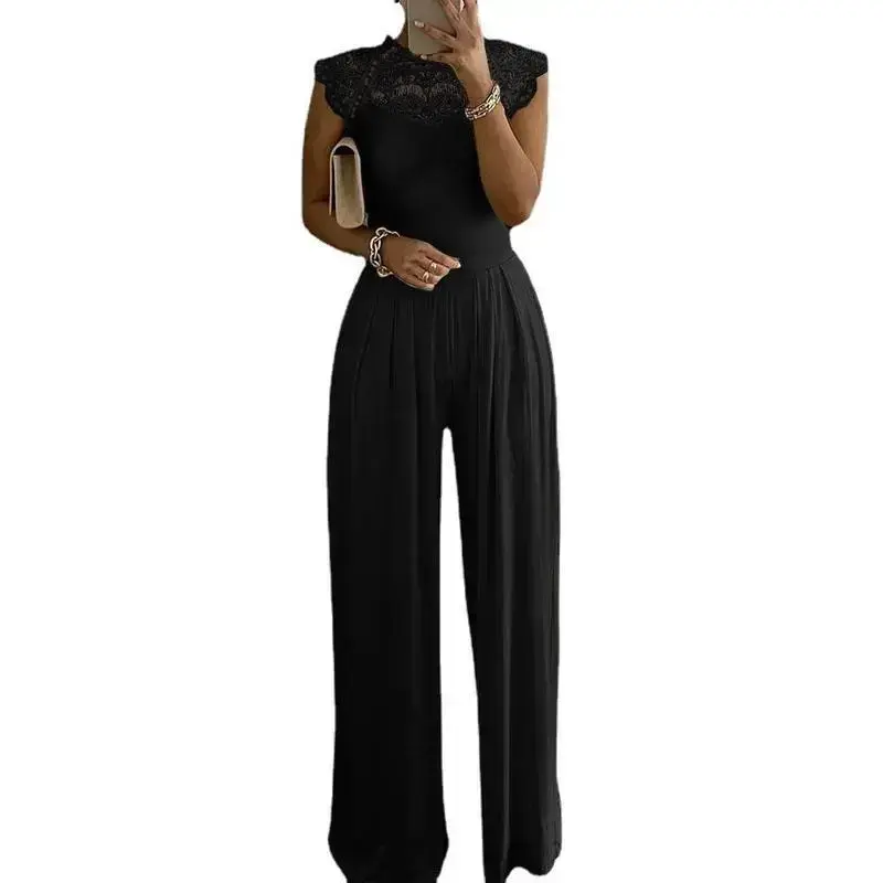 2025solidcolorjumpsuitforwomenFashionloosecasuallacejumpsuitforwomen