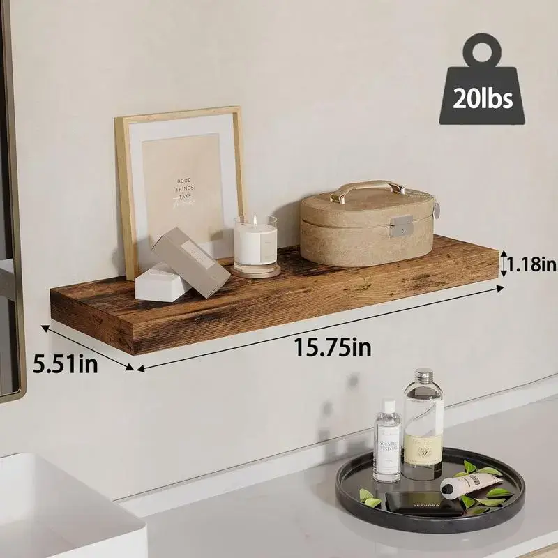 Enhance Your Space with Rustic Elegance 🌳 ✨ 4pcs 15.8in Wall Shelves bring a rustic charm to any room. These floating shelves feature a rustic wood finish, perfect for wall decor. Ideal for bathrooms, living rooms, bedrooms, and kitchens, they add a touch of warmth. The invisible brackets ensure a seamless look. Versatile and Functional 🛋️ Perfect for Your Home 🏠 These shelves are a versatile addition to your home. They provide ample storage and display options. The rustic design complements many interior styles. Upgrade your space with these 4pcs 15.8in wall shelves today!