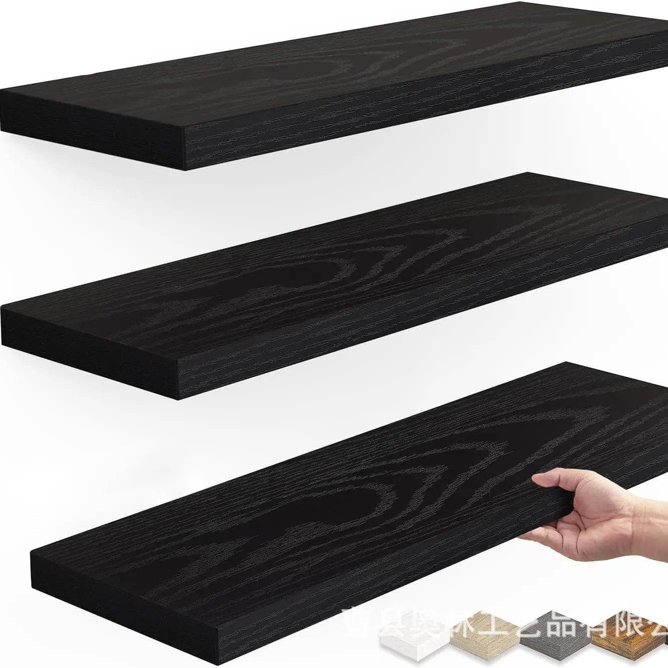 4pcs 15.8in Wall Shelves, Rustic Wood Finish Floating Shelves , Shelves for Wall Decor, with Invisible Brackets for Bathroom, Living Room,Bedroom and Kitchen(Black) floating shelves