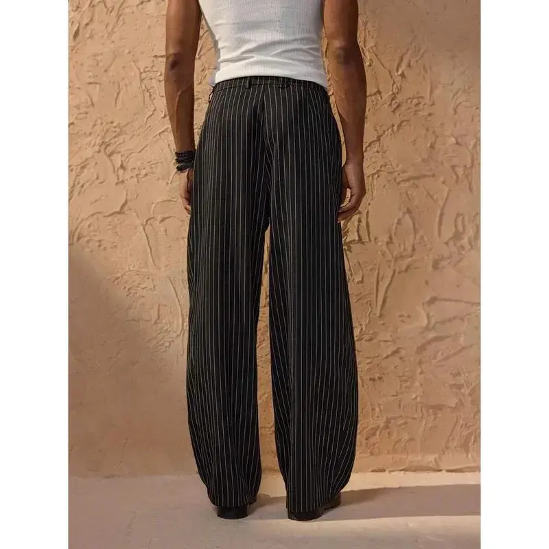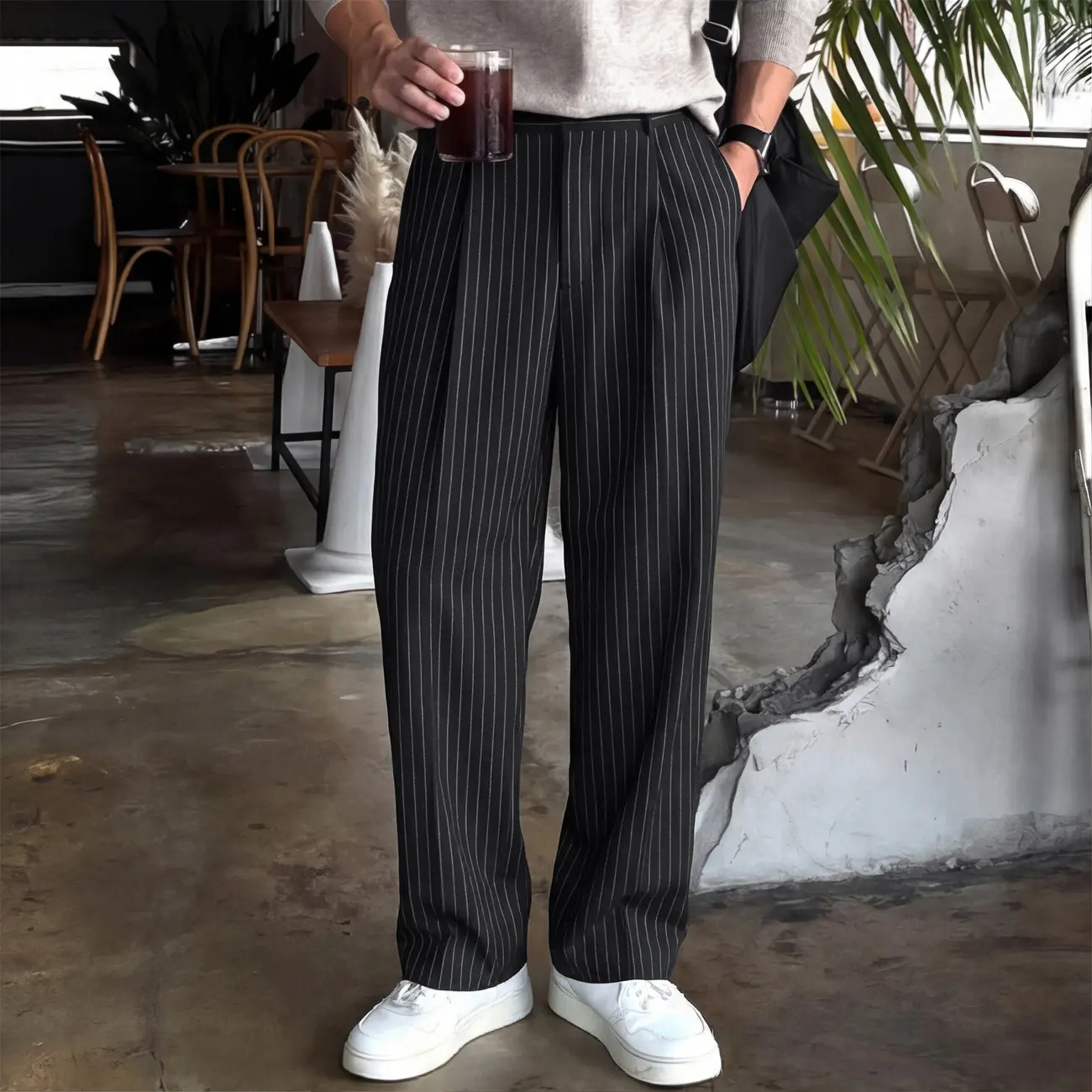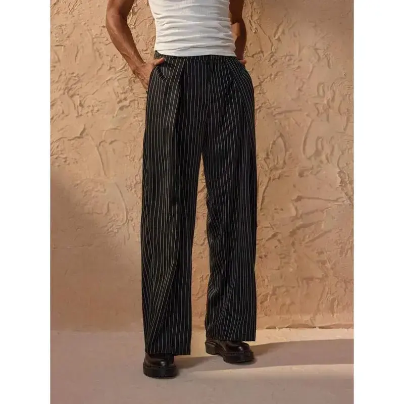 ( Five-star review)Men's Business Casual Black Pinstripe Wide Leg Halloween Wedding Guest Christmas Black White Pants