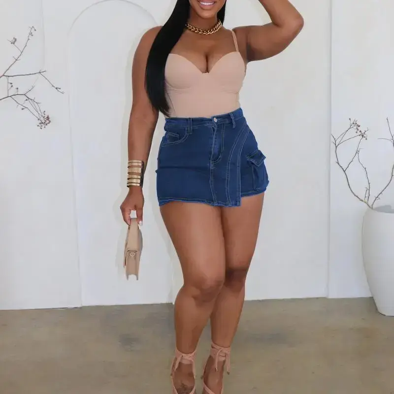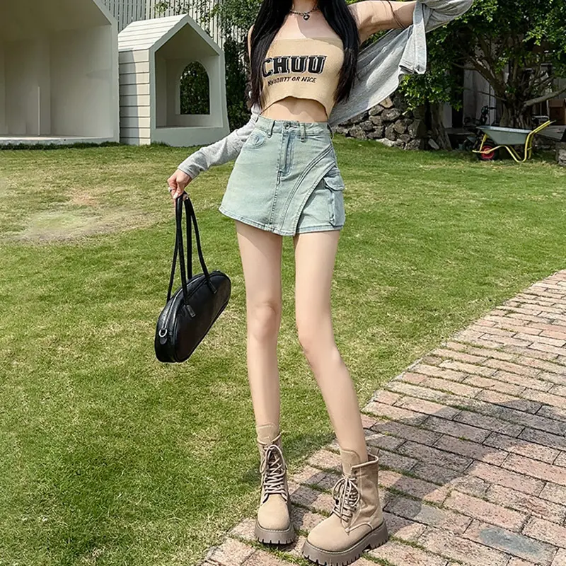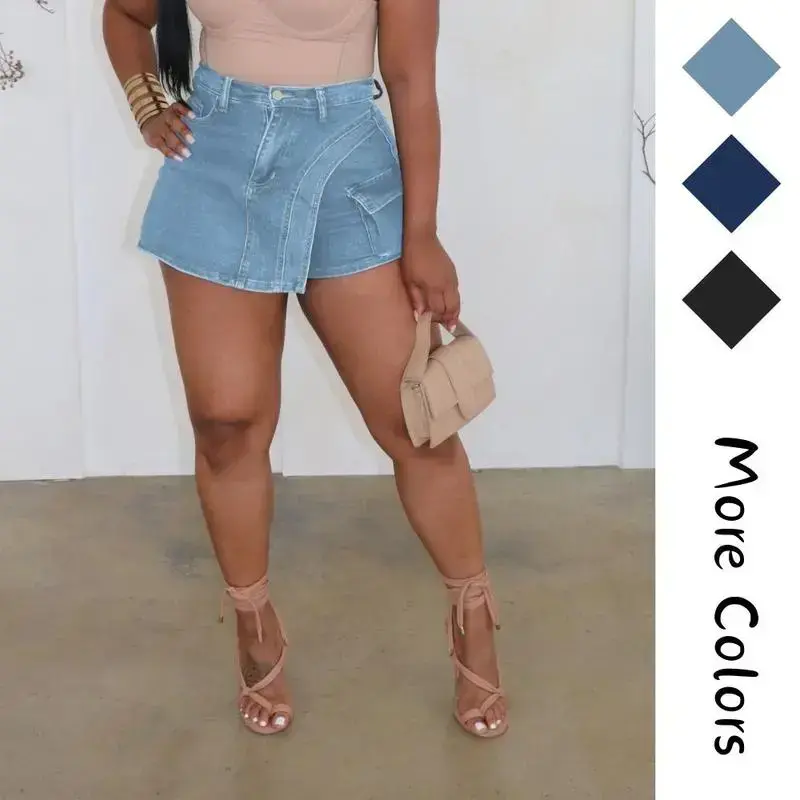 Women's Casual Denim Skorts Skirts with Pockets Women's Denim Shorts Underskirt
