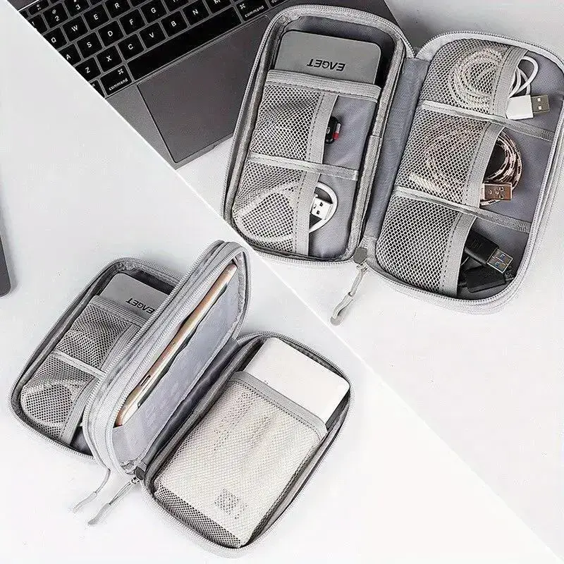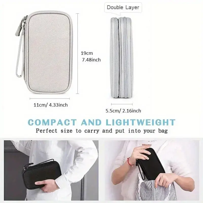 Double Layer Travel Storage Bag, Portable Makeup & Tech Storage Bag with Multiple Compartments, Durable Storage Bag for Cosmetics, Earphones, USB Cable & Passport, Organiser