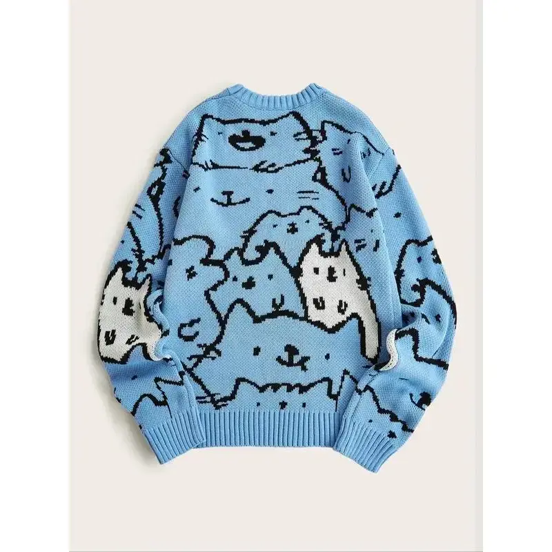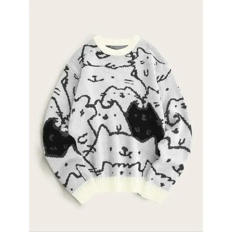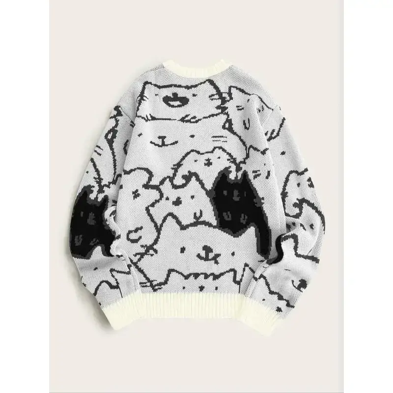 ��Cartoon Pattern��: Features a playful cartoon cat print, making it a standout piece for those looking to express their fun personality in fashion. ��Quality Material��: Constructed from durable acrylic, ensuring resilience while providing a soft touch against the skin for everyday wear. ��Breathable Weaving��: Utilizes a knitting method that enhances breathability, ideal for warmer seasons, allowing air circulation without compromising coverage. ��Shoulder Cut��: Drop shoulder sleeve type offers a relaxed fit, allowing for easy layering and comfort while maintaining a modern look. ��Machine Washable��: Designed for convenience, this sweater is machine washable, making it hassle-free to maintain its vibrant appearance over time.