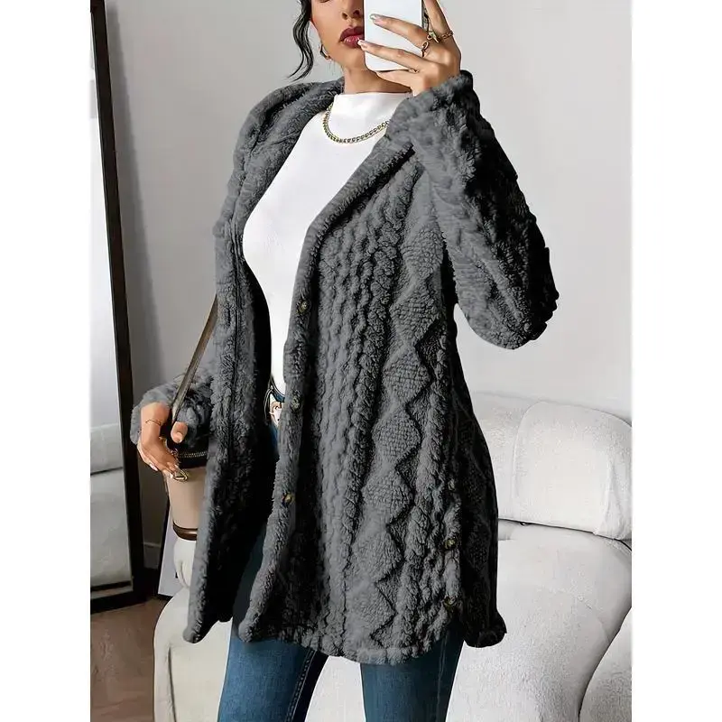 Composition: 100% Polyester/Material: Polyester/Length: Long length/Belt: No/Sleeve Length: Long Sleeve/Sleeve Type: Regular Sleeve/Hem Shaped: Slit/Details: Button Front/Pattern: Argyle/Applicable People: Adult/Sheer: No/Waterproof: No/Fabric: Medium Stretch/Placket Type: Placket/Placket: Single Breasted/Type: Coat/Season: Fall/Winter/Operation Instruction: Machine wash, do not dry clean/Style: Casual/Occasion: Going Out/Fit Type: Loose/Fabric Elasticity: Mid Elasticity/Printing Type: No Printing/Weaving Method: Knit Fabric/Power Supply: Use Without Electricity/Item ID: MM336473