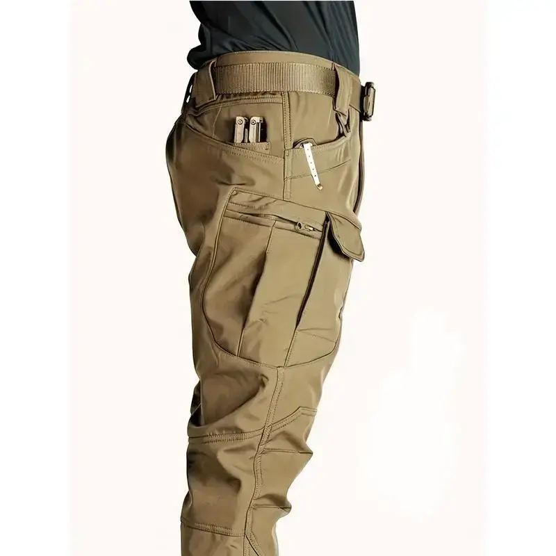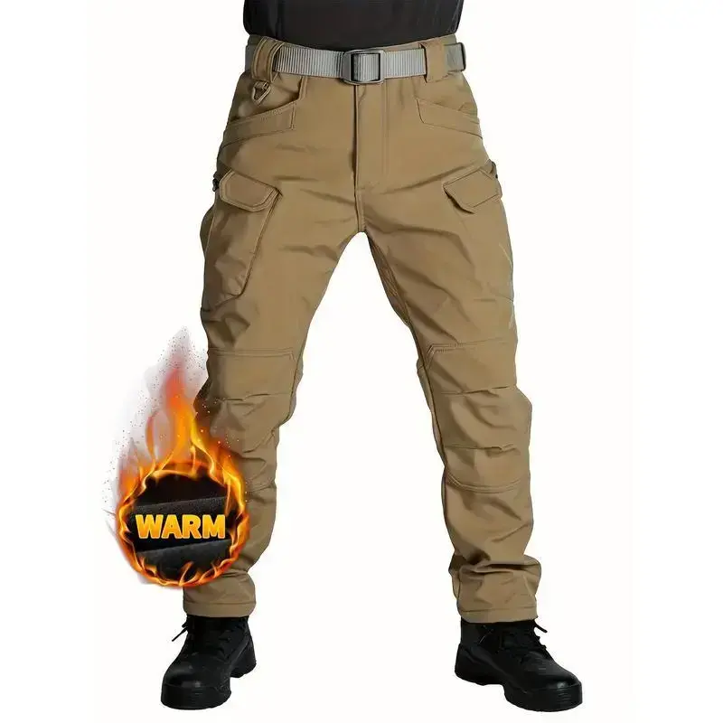 Men's Fleece Cargo Pants, WaterProof Tactical Pants, Loose Casual Windproof Waterproof Outdoor Military Pants, Trousers with Multi Pockets ( No Belt ), Perfect for Hiking, Clamping, Winter