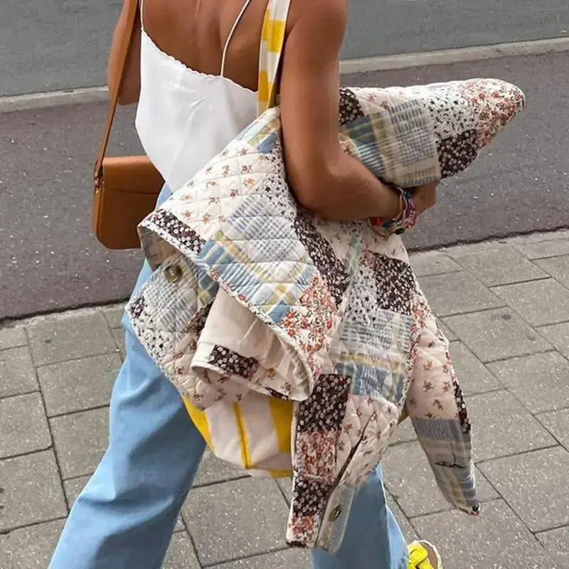 Women Fall Quilted Jacket, Lightweight Floral Print Casual Long Sleeve Button Cardigan, Ladies Outwear Streetwear, Ladies Clothes for Indoor Outdoor Wear, Ladies Clothes for Daily Wear