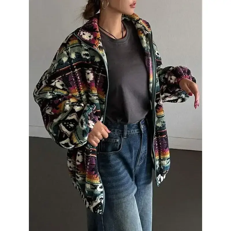 Women's Plush Jacket Casual Fashionable Jacket Winter Fashion Stand Collar Zipper Pocket Long Sleeve Warm Coat, Stylish for Cold Weather