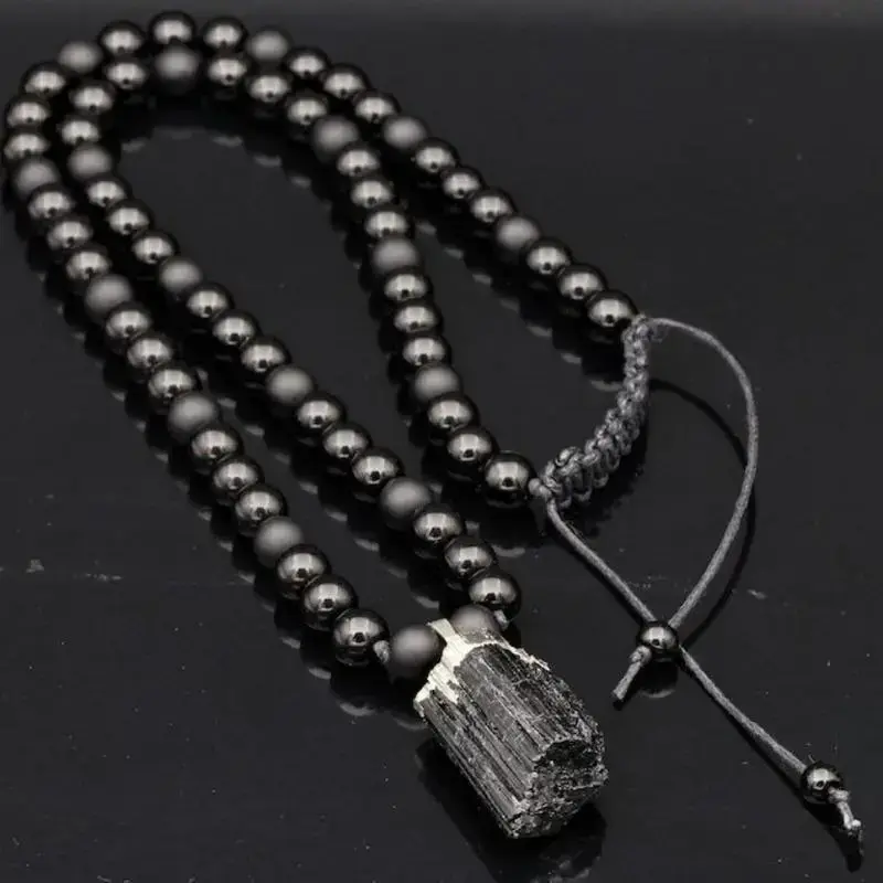 Raw Pendant Natural Black Onyx Gemstone Protection Stone Necklace Men's Necklace Gift for Him Necklace