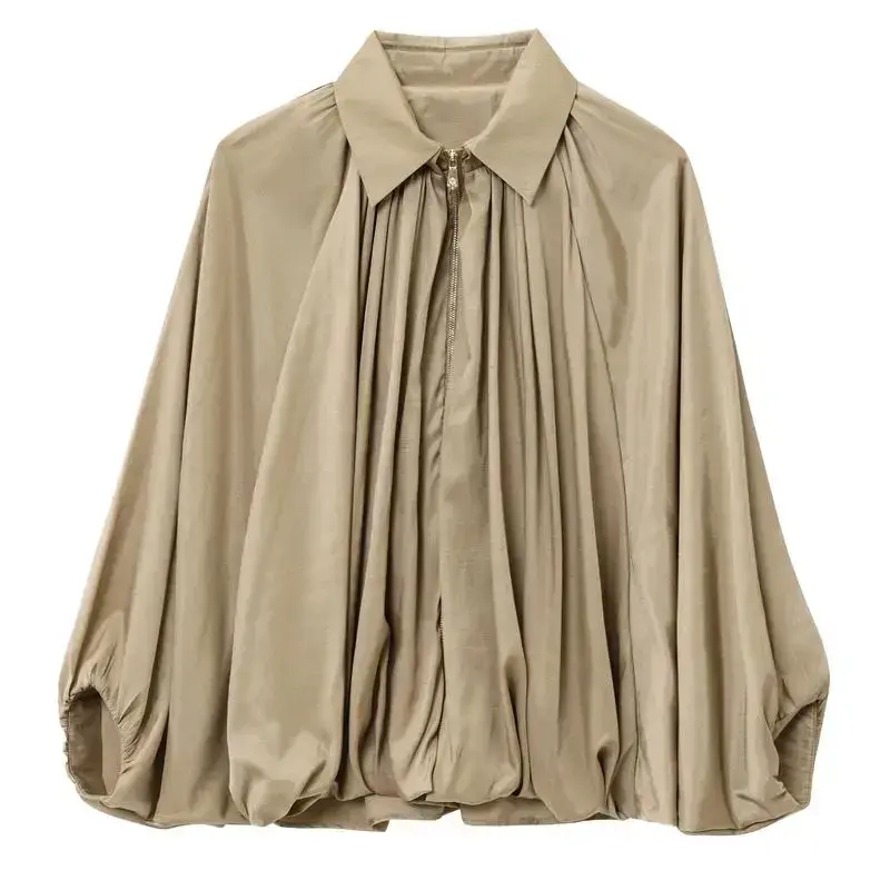 Features: The women puffed bomber jacket, puffed silhouete, batwing long sleeve featuring zip up,lapel collar,pleated shirts, lightweight casual style,breathable for summer. Pleated shirt jackets design is not just trendy, but also adds a chic element to your everyday ensemble. Material: Our lightweight summer bomber jackets are made of 100% polyester, lightweight, breathable, skin friendly and super comfy to wear. Matching: Pair this soft puffed bomber jacket with a basic tee and jeans for a casual and effortless look. It can also match favorite vest, t-shirt, jeans, and pants. You can create fashion design according to different occasions. It's suitable for year-round outfit combinations. Occasions: Women's breathable jacket is suitable for srping, summer, fall and winter, perfect for everyday wear, whether it's for work, school, shopping, or parties. It's a short pea coat that pairs well with any top and trousers. Whether you're going for a casual or a more dressed-up look, this bomber jacket is a must-have. Easy Care: To keep your jackets clean, just freshen them out and wipe them with a cloth or clothing brush. Machine wash max 30oC/86oF using delicate cycle, do not use bleach,iron maximum 110oC/230oF,do not tumble dry.