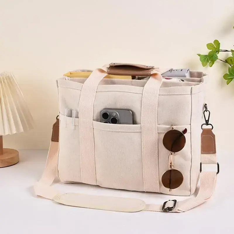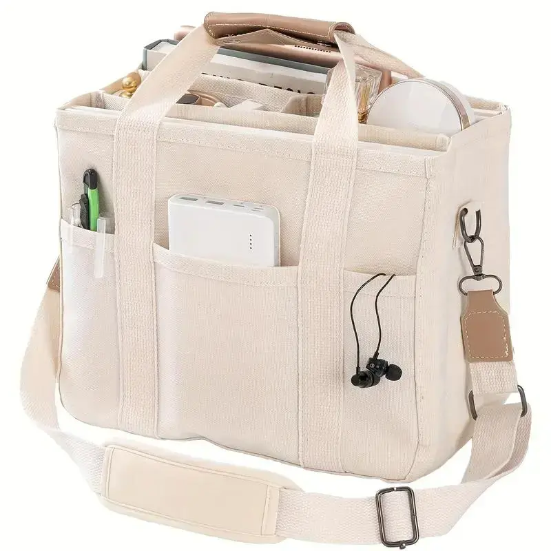 Women's Casual Canvas Tote Bag, Large Capacity Multi-pocket Handbag, Adjustable Shoulder Strap, Women's Casual Shopping Bag