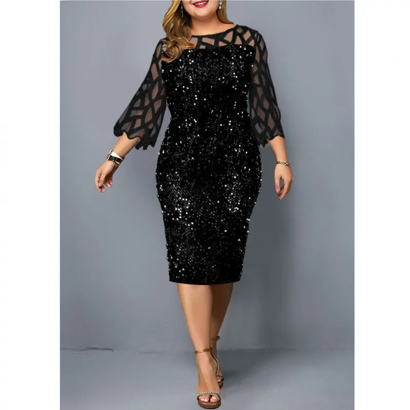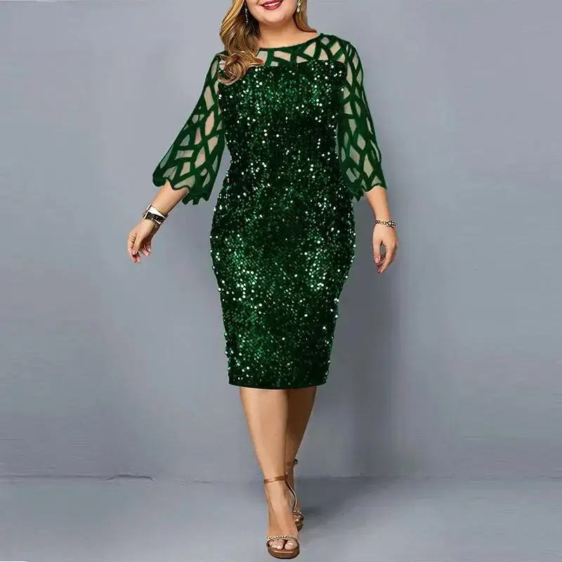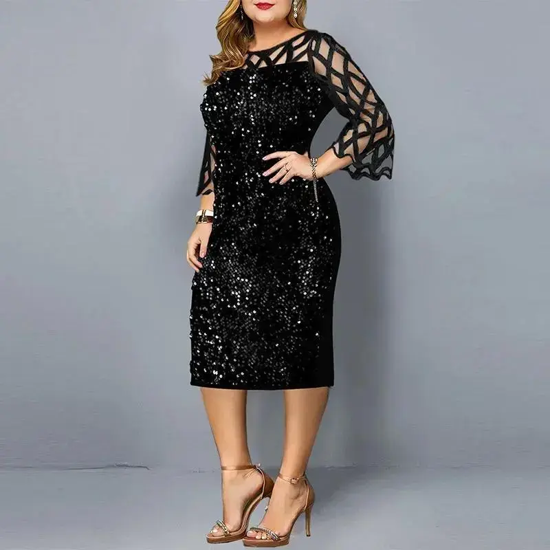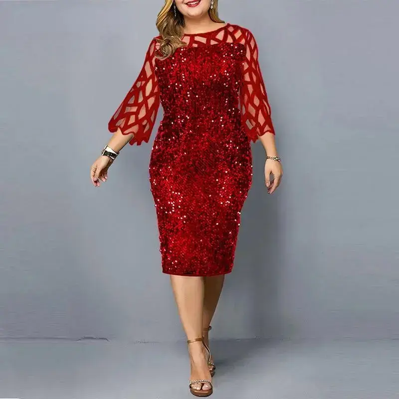 ElegantSequinPlusSize4XL5XLWomenMidiDressSexyCasualEveningPartyDressesGownWeddingLuxuryRobeRougeVestidos