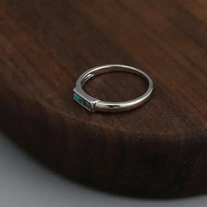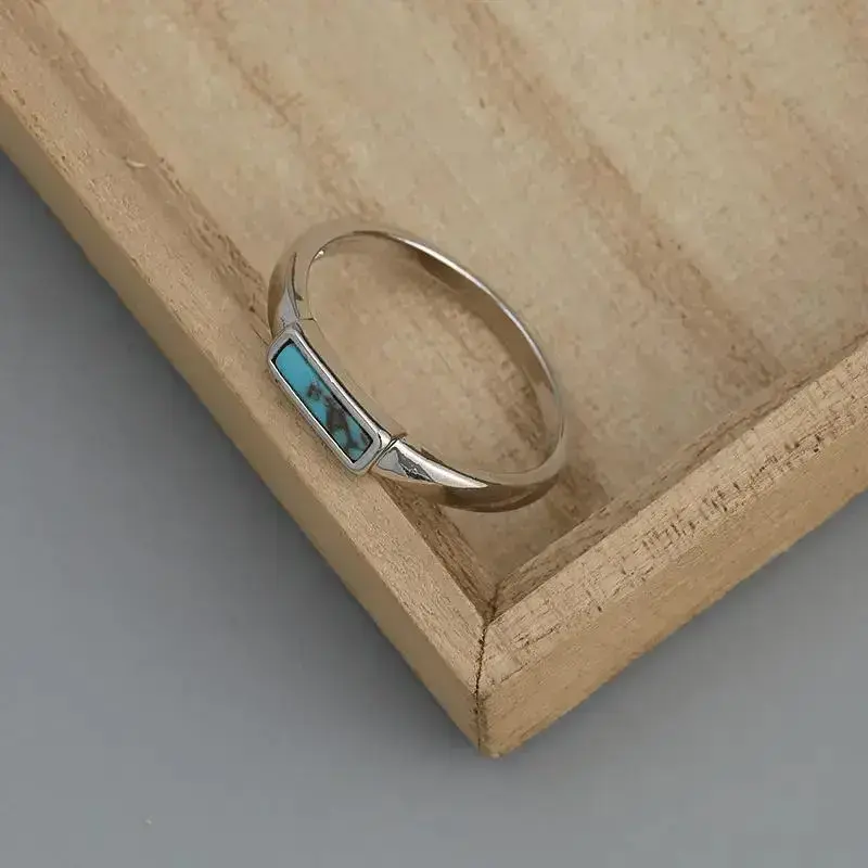 Unisex Rectangular Turquoise Inlay Minimalist Band Ring, Vintage-Inspired, Available in Multiple Sizes