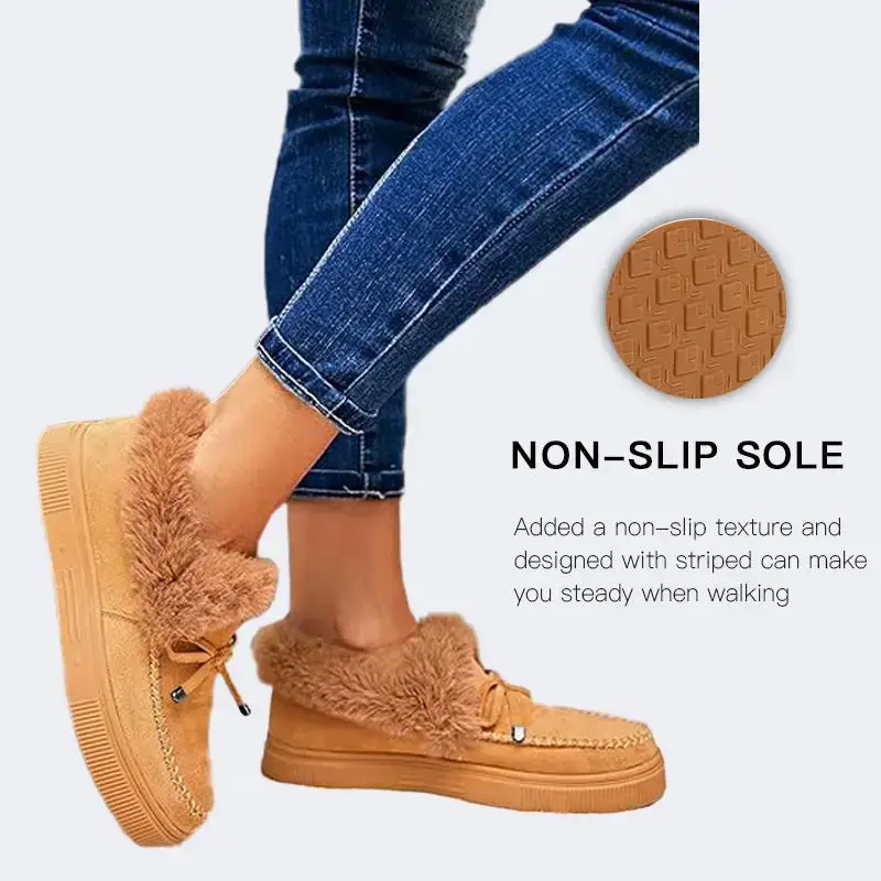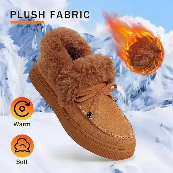 Women's Platform Warm Moccasin Slippers Slip On Loafer Plush Shoes Anti Slip Flat Walking Loafers Faux Fur Snow Boots Soft and comfortable suede slippers for women