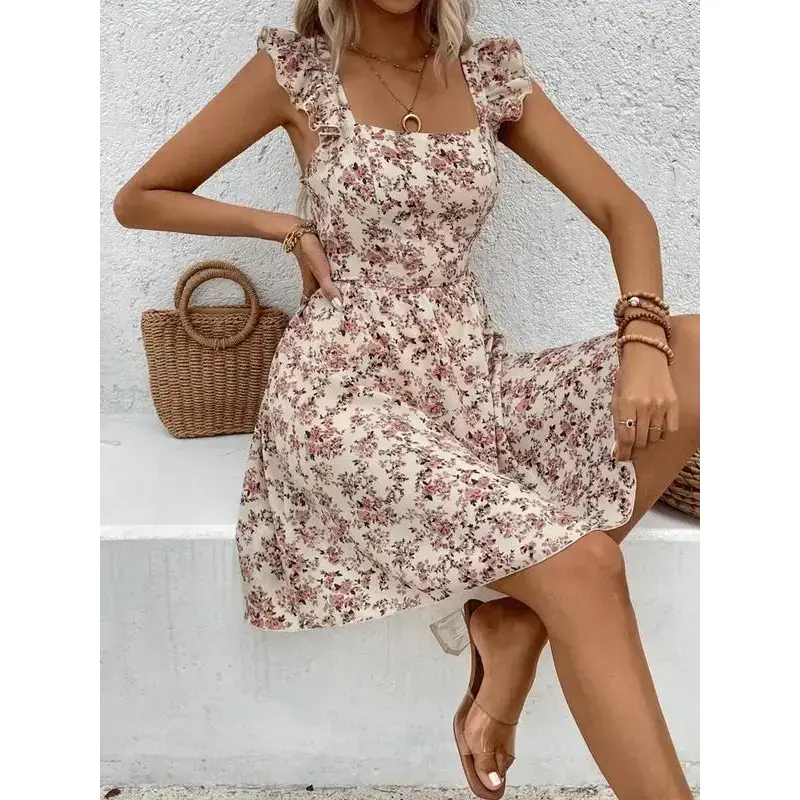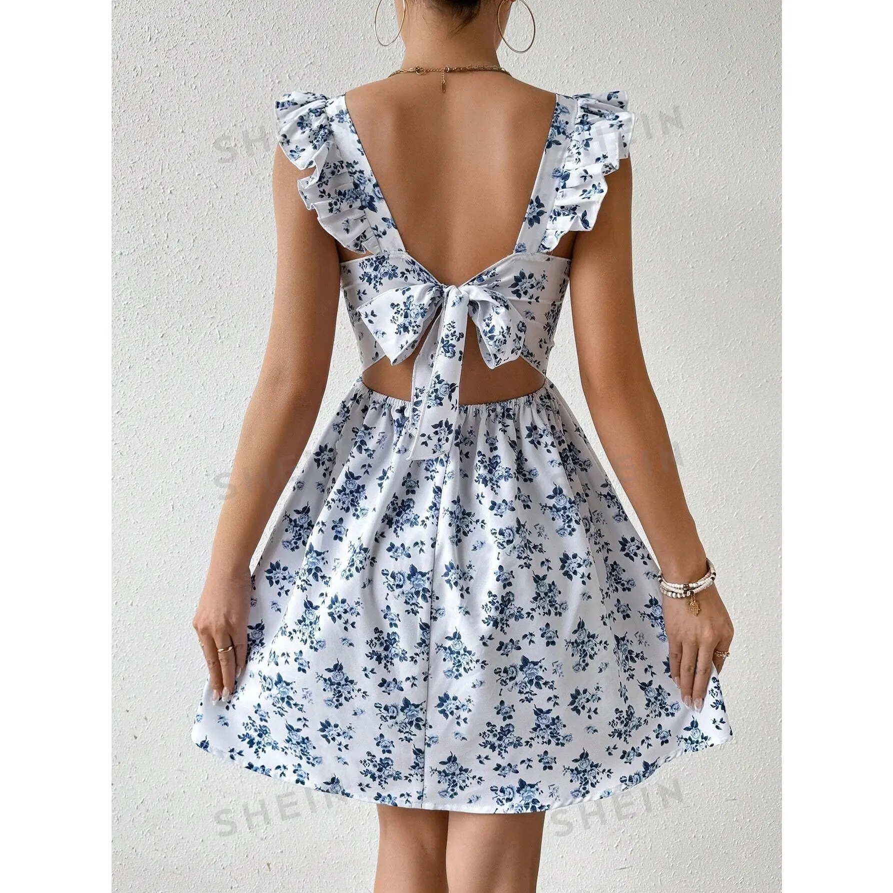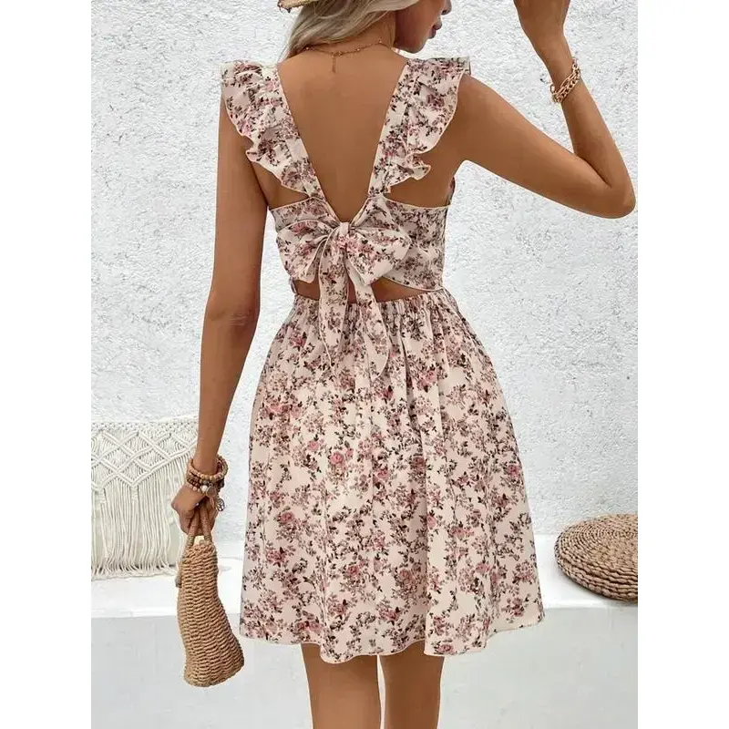 ANRABESS Womens Summer Casual Sleeveless Square Neck Smocked Ruffle Backless Boho Mini Dress 2026 Sundress Beach Vacation Outfits