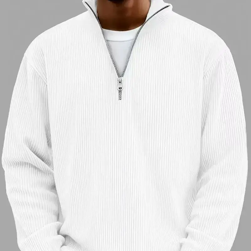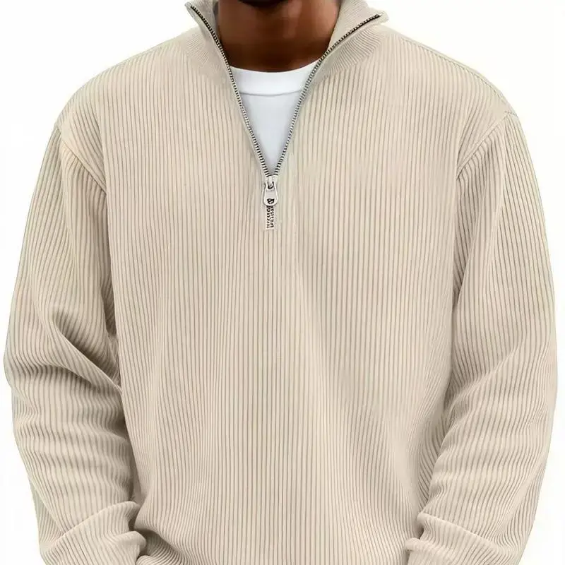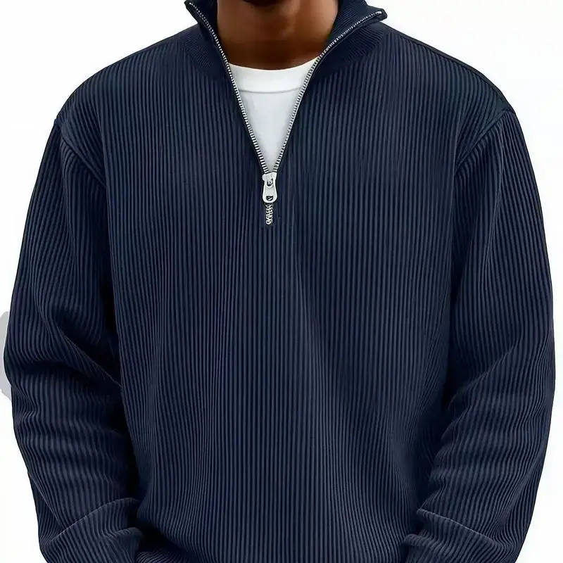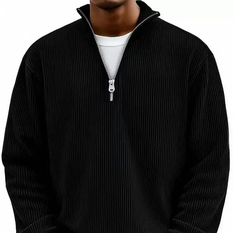 Men's Stylish Casual Autumn Winter Corduroy Polo Shirt Warm Corduroy Material Long Sleeve Design Zipper Closure Versatile Choice